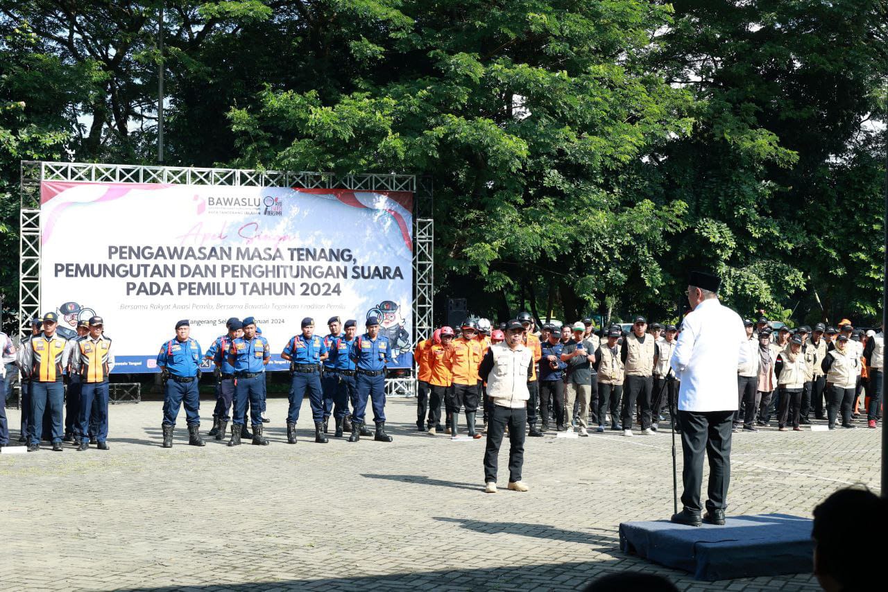 SETU, LENSABANTEN.CO.ID – Pelaksanaan Pemilihan Umum (Pemilu) 2024 telah memasuki tahapan masa tenang. Untuk itu, Badan Pengawas Pemilihan Umum (Bawaslu) Kota Tangerang Selatan menyelenggarakan Apel Siaga Pengawasan Masa Tenang dan Pungut Hitung, yang dipimpin langsung oleh Wali Kota Tangerang Selatan Benyamin Davnie, di Halaman Kantor Disdukcapil, Setu, pada Minggu, 11 Februari 2024.