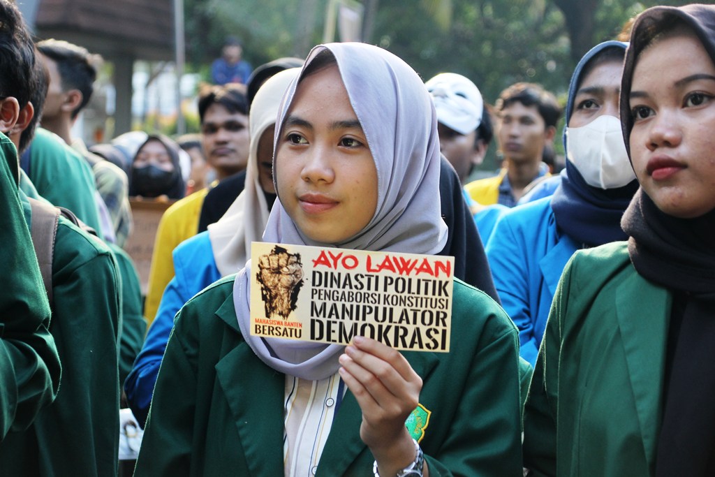 Dalam mimbar bebas tersebut, para mahasiswa menegaskan menolak politik dinasti dan juga menyerukan kepada seluruh rakyat dan mahasiswa se-Indonesia untuk melawan pelanggar HAM.