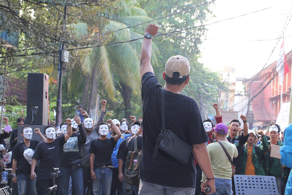 “Memakai topeng sebagai bentuk perlawanan. Karena kenapa, hari ini masih banyak intimidasi-intimidasi yang dilakukan para penguasa. Maka kita akan lawan terus,” imbuh Shandy.