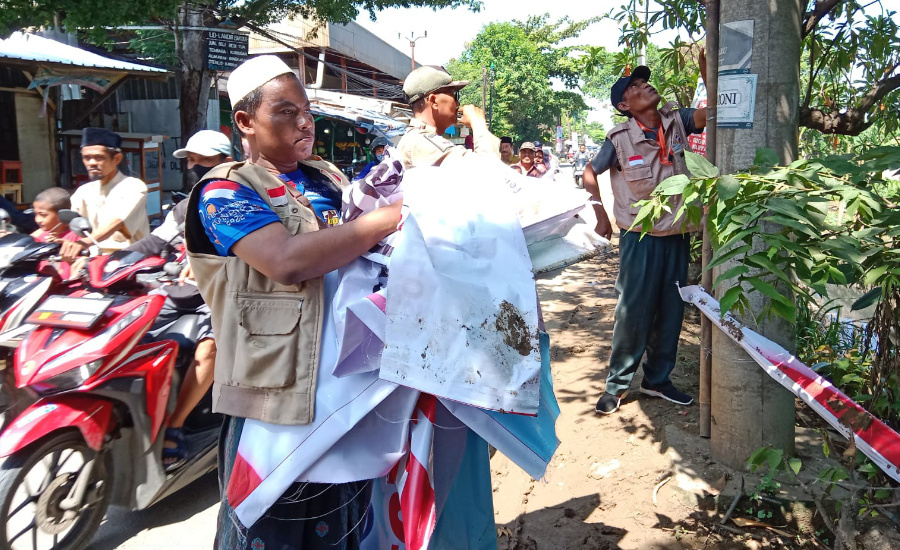 KOTA TANGERANG, LENSABANTEN.CO.ID – Badan pengawas pemilu (Bawaslu) Kota Tangerang telah menurunkan alat peraga kampanye (APK) di sejumlah wilayah. Sekitar 60 persen APK yang ada berhasil ditertibkan di masa tenang kampanye saat ini.