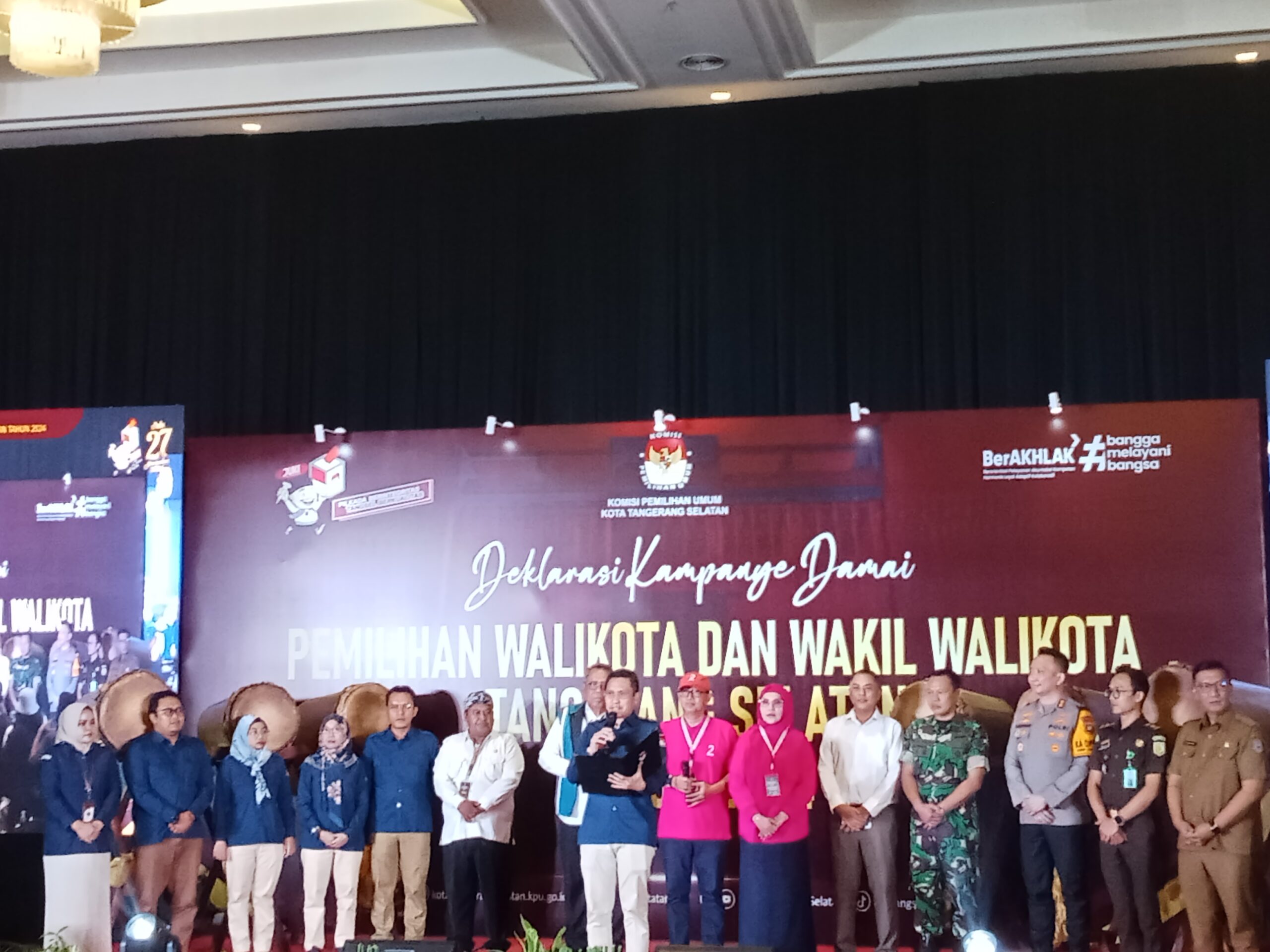 Tangsel, LENSABANTEN Komisi Pemilihan Umum (KPU) kota Tangsel menyelenggarakan deklarasi kampanye damai Pilkada Tangsel 2024 di daerah Serpong, Tangsel, Selasa (24/9).