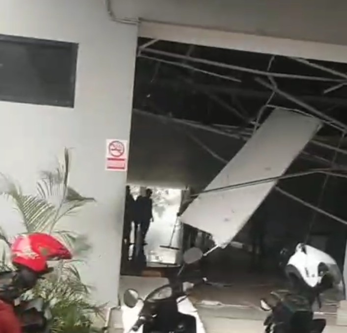 Hal tersebut disampaikan oleh Marbot Masjid Islamic Center BSD, Erwin, saat ditemui di lokasi kejadian. Ia menyebutkan angin bertiup sangat kencang hingga menyebabkan plafon ambruk.