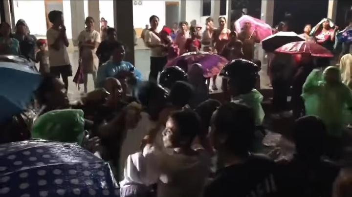 Dengan bantuan tali, Azwar bersama warga dan pihak berwenang mengevakuasi Khuzaifah yang ditemukan dalam kondisi menggigil kedinginan.