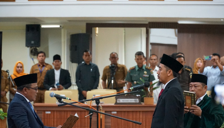 Pembacaan sumpah dipandu langsung oleh Ketua DPRD H. Kholid Ismail bersama rohaniawan Sarja terhadap Didi Suryadi yang disaksikan oleh seluruh Pimpinan dan Anggota DPRD di ruang rapat paripurna.