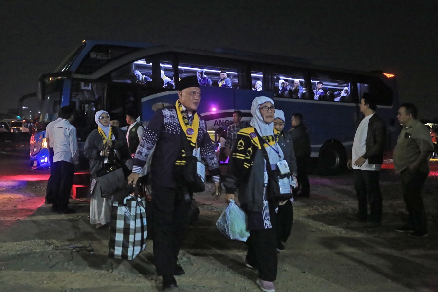 FOTO : 433 Jemaah Haji Banten Tiba di Asrama Haji Cipondoh