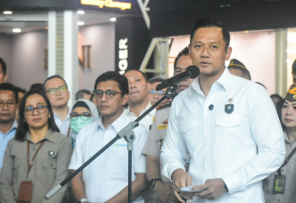 Menteri Koordinator Bidang Infrastruktur dan Pembangunan Kewilayahan Agus Harimurti Yudhoyono (kiri) bersama Menteri Imigrasi dan Pemasyarakatan Agus Andrianto (kanan) menjelaskan tentang Aplikasi All Indonesia saat Konferensi pers di Terminal 3 Bandara Soekarno-Hatta, Kota Tangerang, Banten, Kamis (24/07/2025).