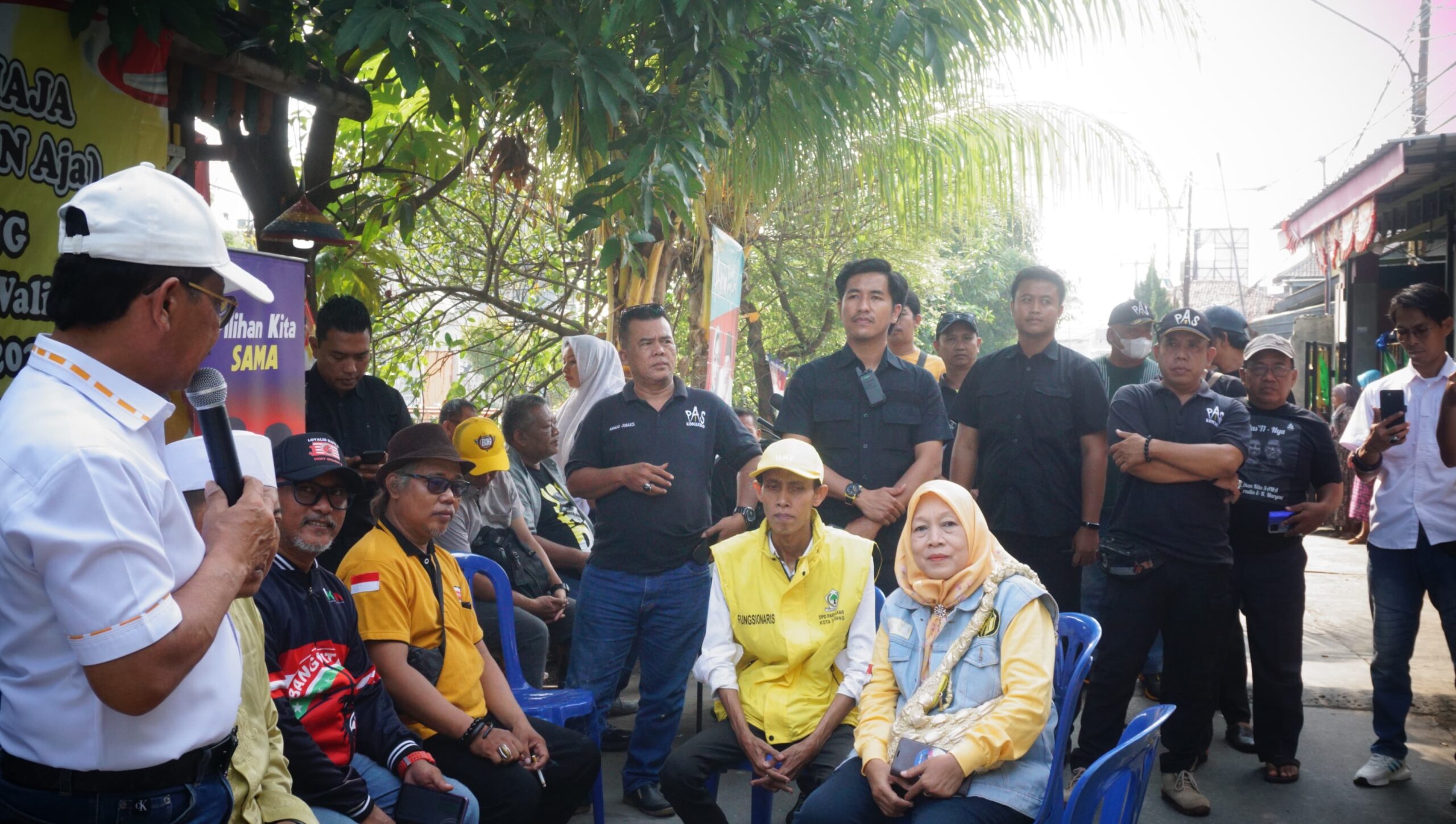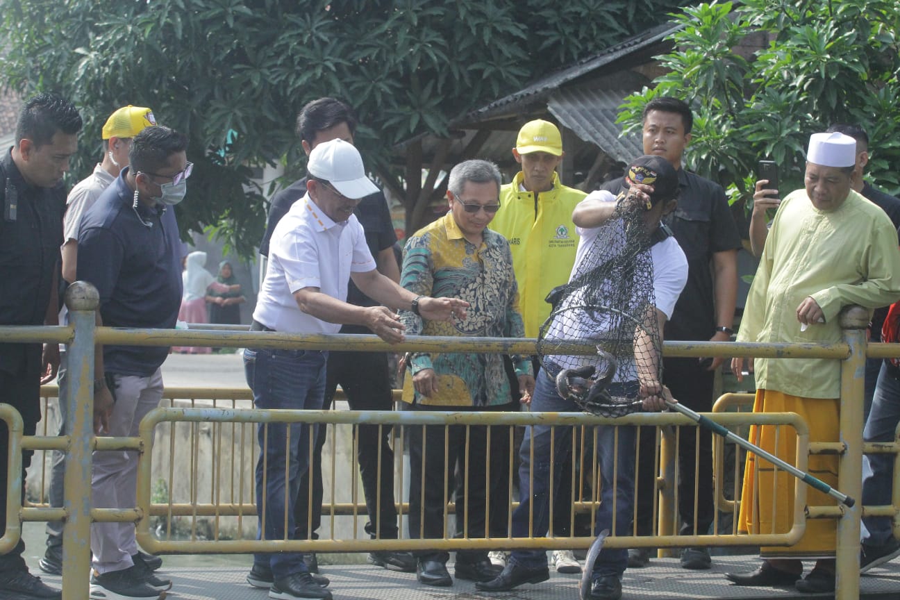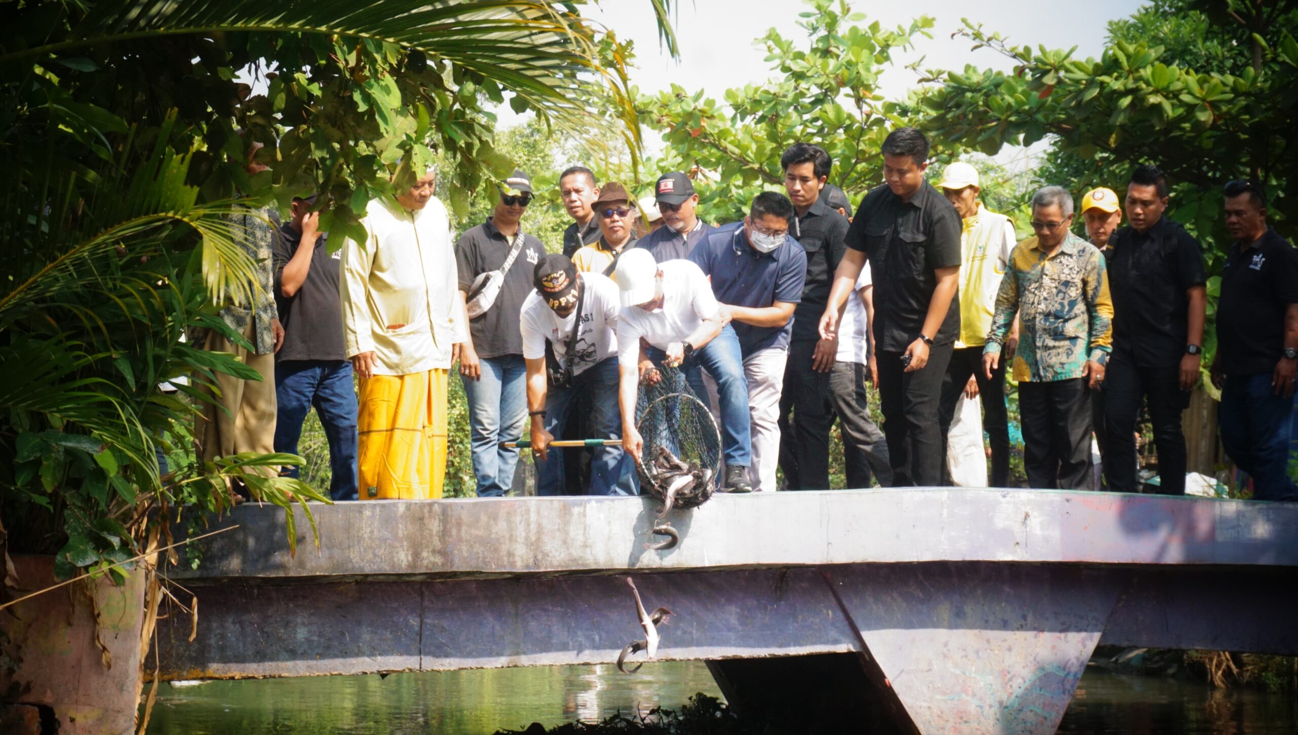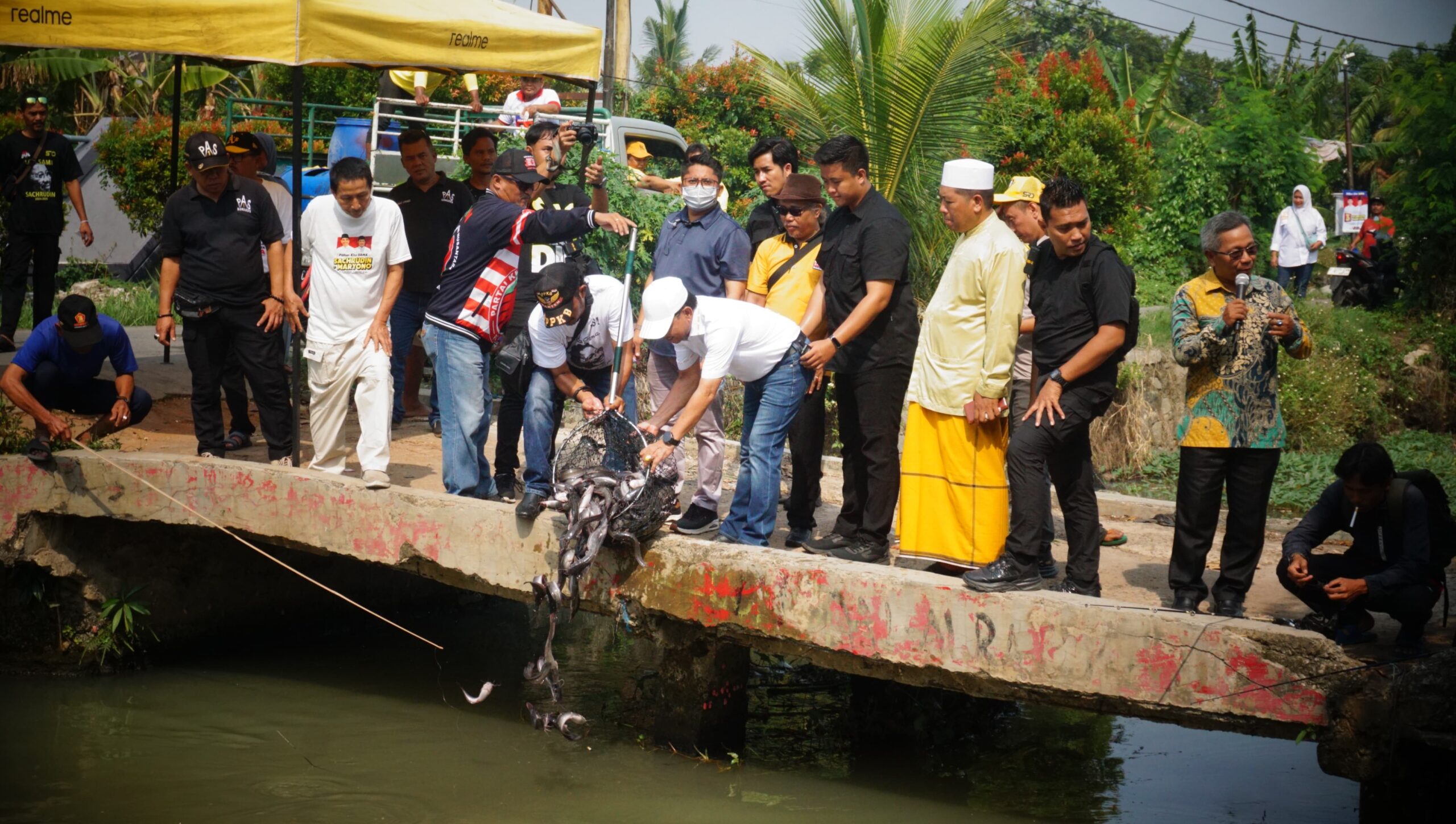 Calon Wali Kota Tangerang H. Sachrudin saat blusukan di wilayah Kelurahan Batujaya, Kecamatan Batuceper, Selasa, 1 Oktober 2024. Dalam blusukan di RW 02,05 dan 06 itu, H. Sachrudin menggelar acara dialog dan mancing bareng dengan menebar ikan lele di kali H. Kilin. Foto : Dok Tim SAMA