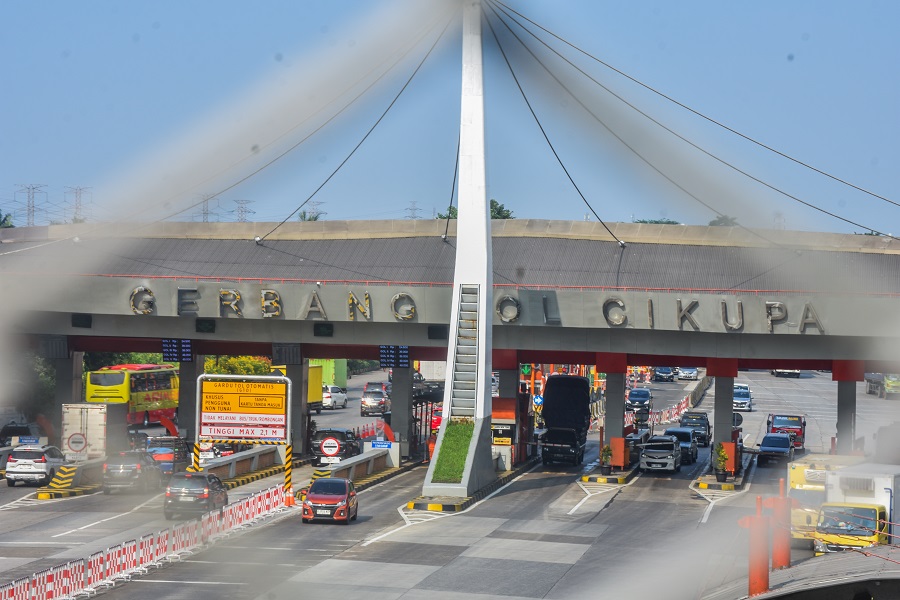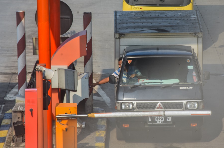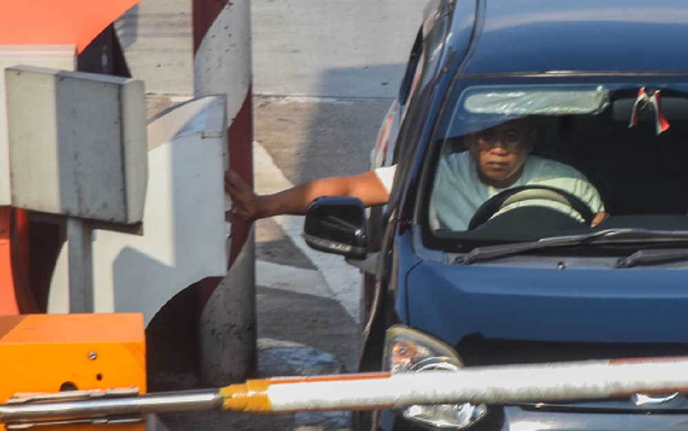 Sebuah pengendara roda empat sedang melakukan pembayaran tol, di Gerbang Tol Cikupa, Kabupaten Tangerang, Banten, Selasa (16/04/2024). Sejumlah Badan Usaha Jalan Tol (BUJT) akan kembali menerapkan diskon tarif tol untuk beberapa ruas jalan tol pada masa arus balik Lebaran 2024, mulai Tol Jakarta – Merak, Tol Trans Jawa dan Tol Trans Sumatera Diskon Tarif Tol mulai dari Tanggal 17 April mulai pukul 05:00 WIB – 19 April 2024 hingga pukul 05:00 WIB besar Diskon Tarif Tol 20%. Foto : Ilham Herda Fauzi/LENSABANTEN