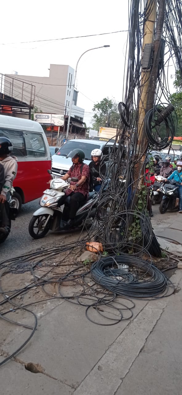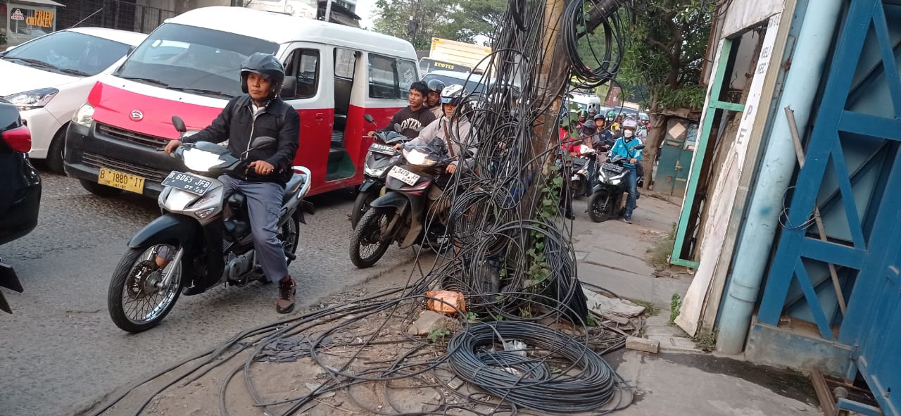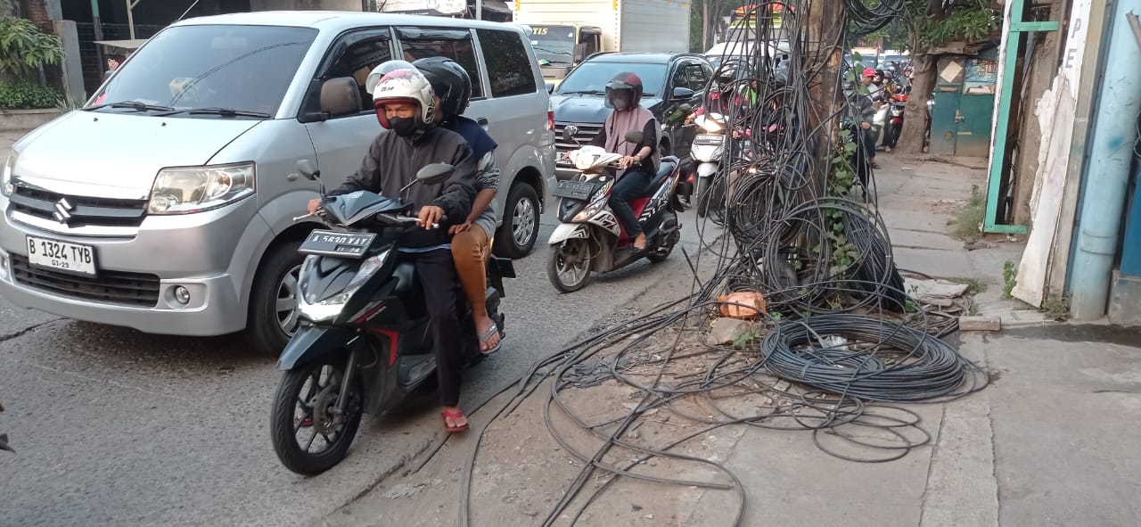 FOTO : Kabel Semrawut Bahayakan Pengendara Bermotor