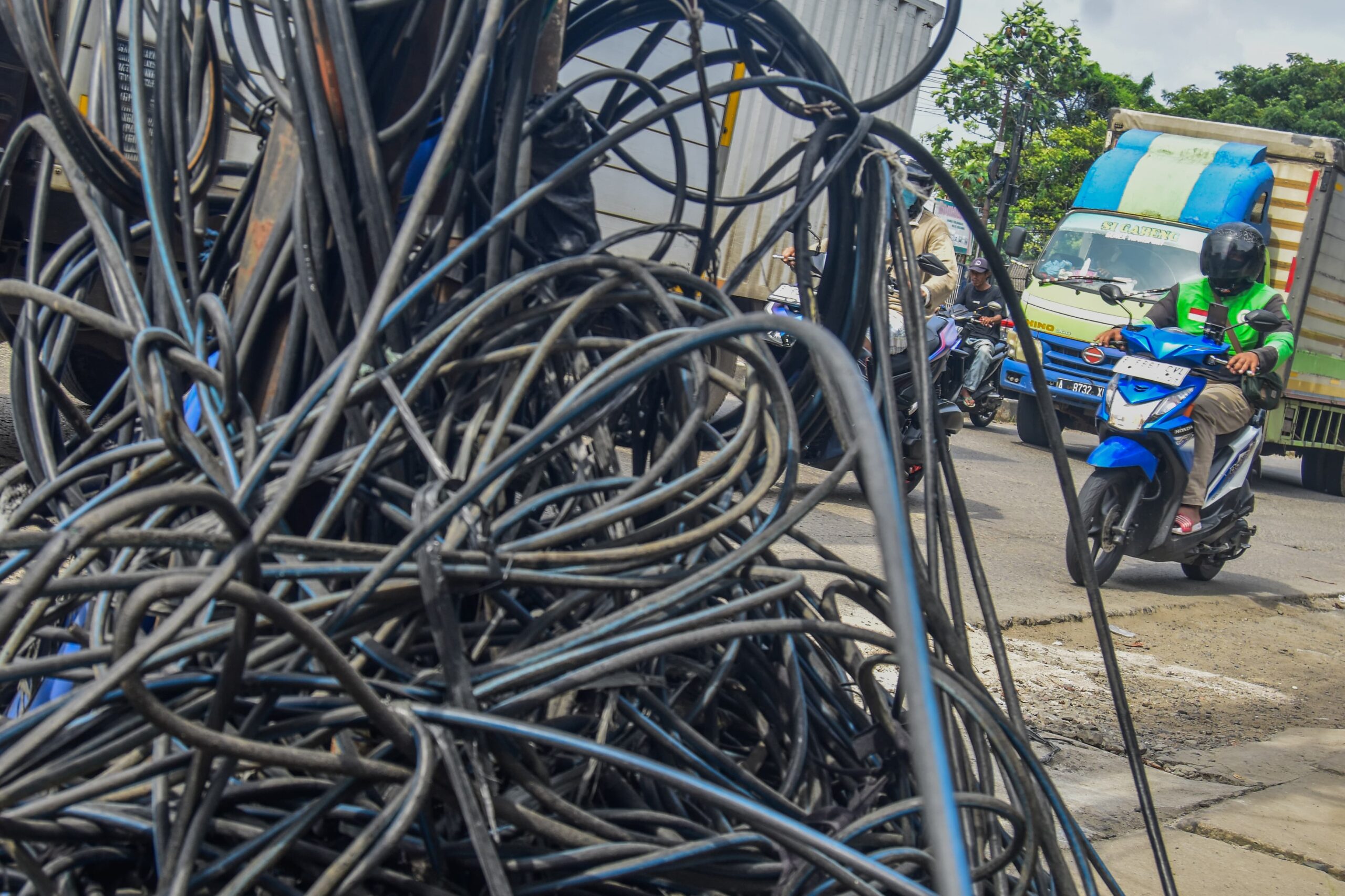 FOTO : Kabel Utilitas Semrawut di Kota Tangerang Membahayakan Warga