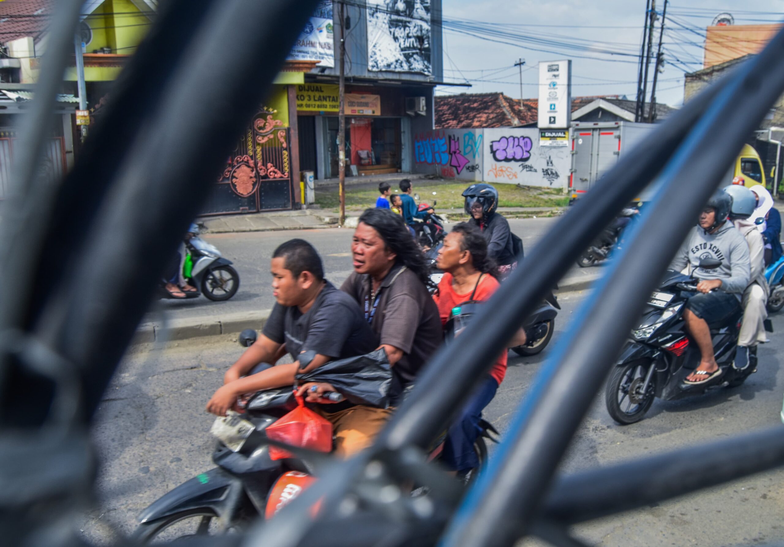 Masyarakat melintasi kabel utilitas semrawut di jalan Moh.Toha, Kota Tangerang, Banten, Selasa (22/04/2025). Penataan instalasi yang diduga merupakan kabel telekomunikasi iniĀ semrawut hingga menjuntai ke jalan sehingga membahayakan pengguna jalan serta mengganggu keindahan tata ruang. Foto : Ilham Herda Fauzi/LENSABANTEN