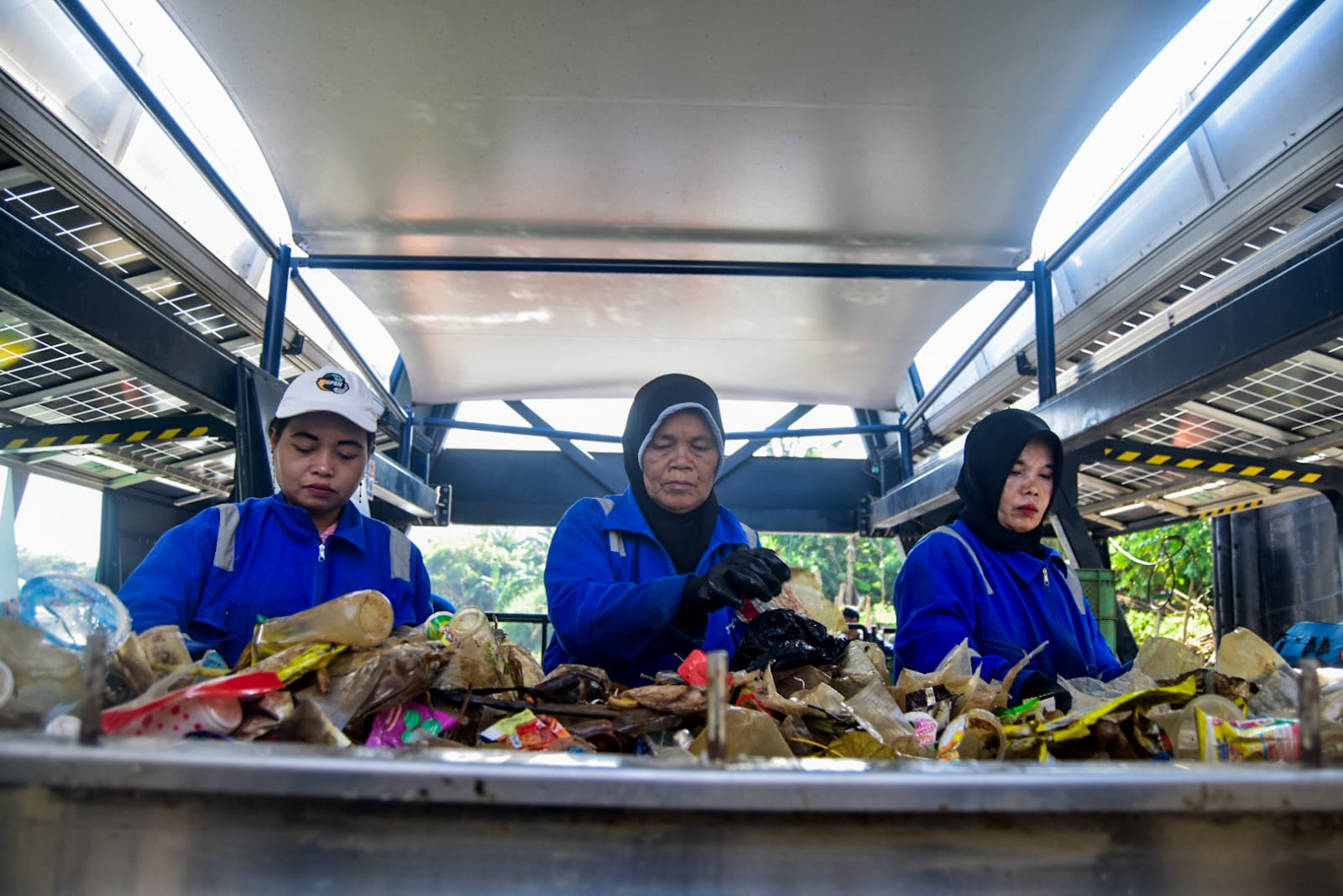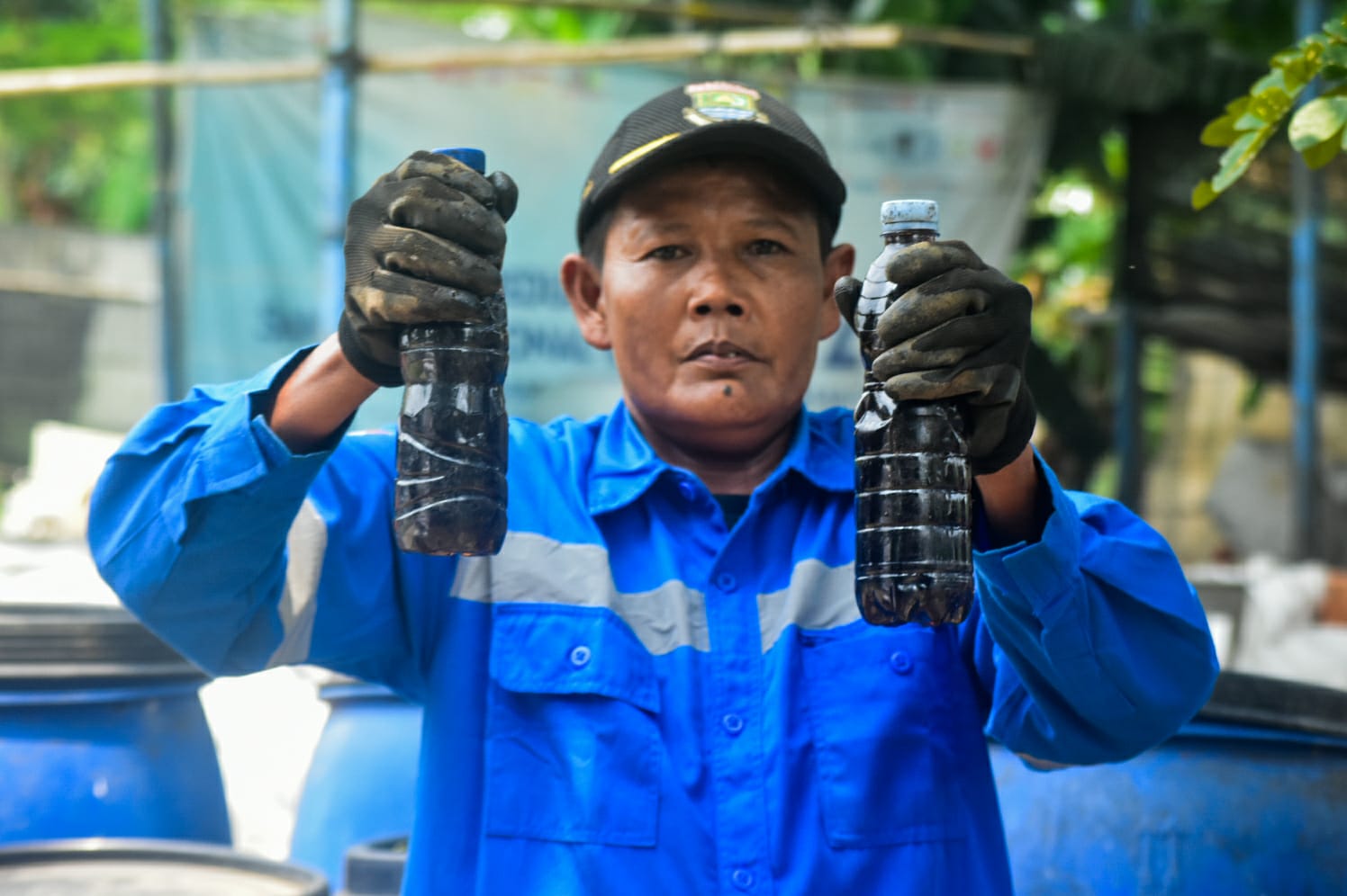 Petugas mengolah sampah organik untuk dijadikan pupuk organik cair di TPS3R Tanjung Burung, Kabupaten Tangerang, Banten, Rabu (27/8/2025). Kementerian Lingkungan Hidup mencatat angka pengelolaan sampah di Indonesia masih sekitar 39,1 persen dan terus diupayakan serta didorong hingga 51,2 persen sampai akhir tahun 2025 guna mengurangi beban sampah di Indonesia. Foto : Ilham Herda Fauzi/LENSABANTEN