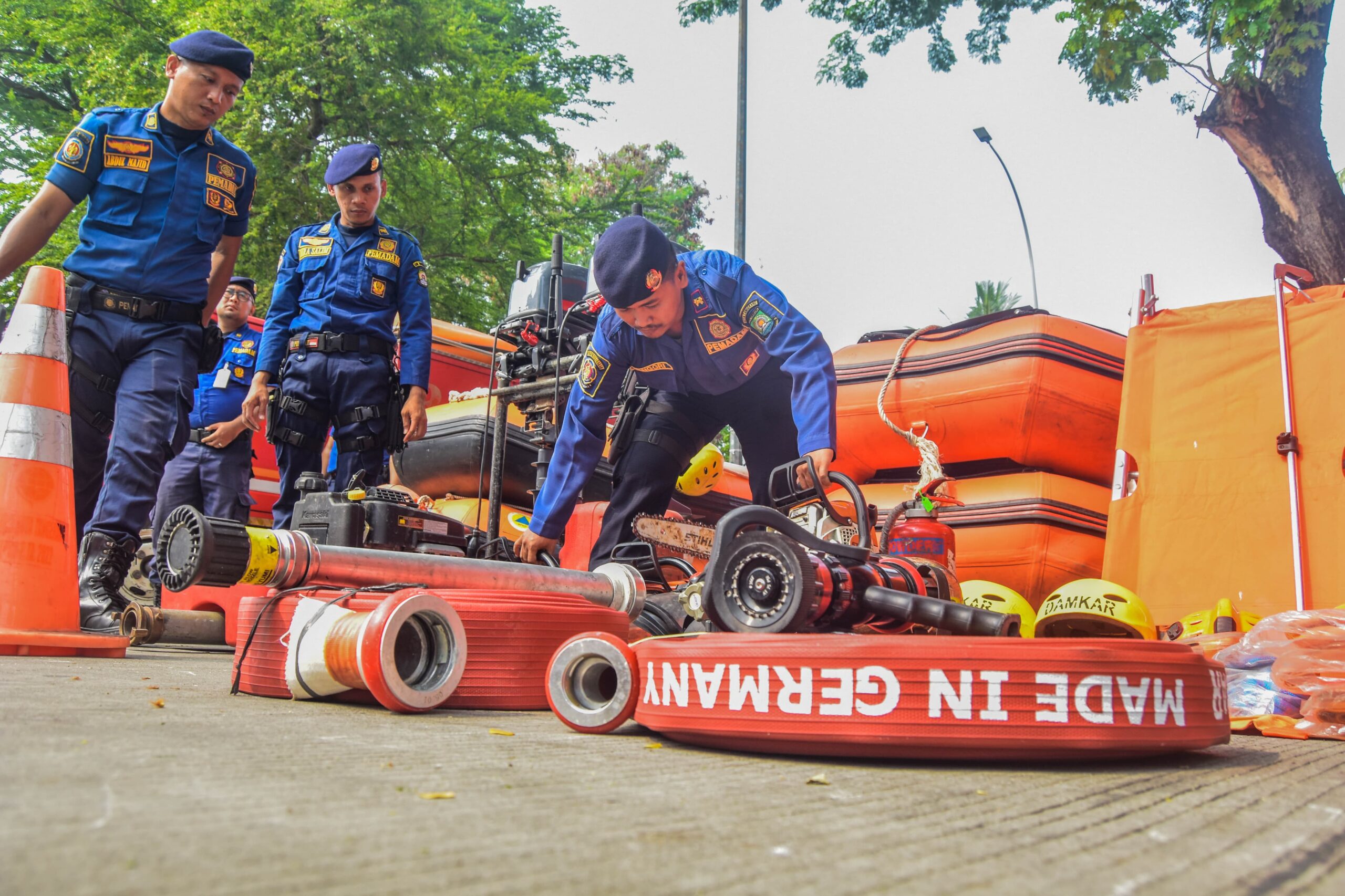 Sejumlah anggota BPBD Kota Tangerang sedang merapihkan alat rescue dalam Apel Siaga Bencana di Stadion Benteng Reborn, Kota Tangerang, Banten, Kamis (14/11/2024).