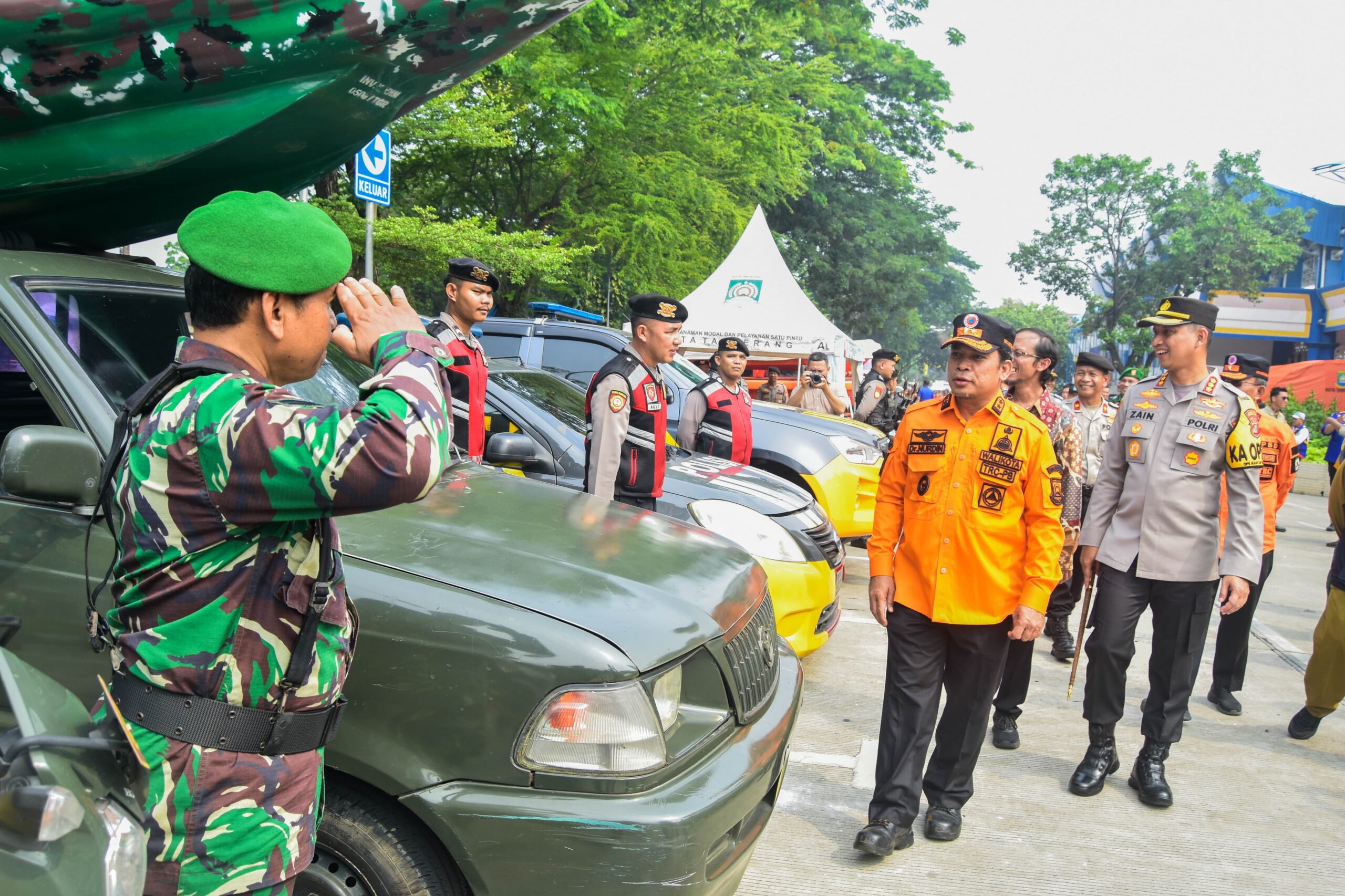 Apel Siaga Bencana yang di ikuti sejumlah instansi terkait tersebut digelar sebagai bentuk kesiapsiagaan dalam menghadapi peningkatan bencana alam saat musim hujan di wilayah Kota Tangerang. Dalam Apel Siaga Bencana adapun pengecekan alat – alat instansi terkait. Foto : Ilham Herda Fauzi/Lensabanten