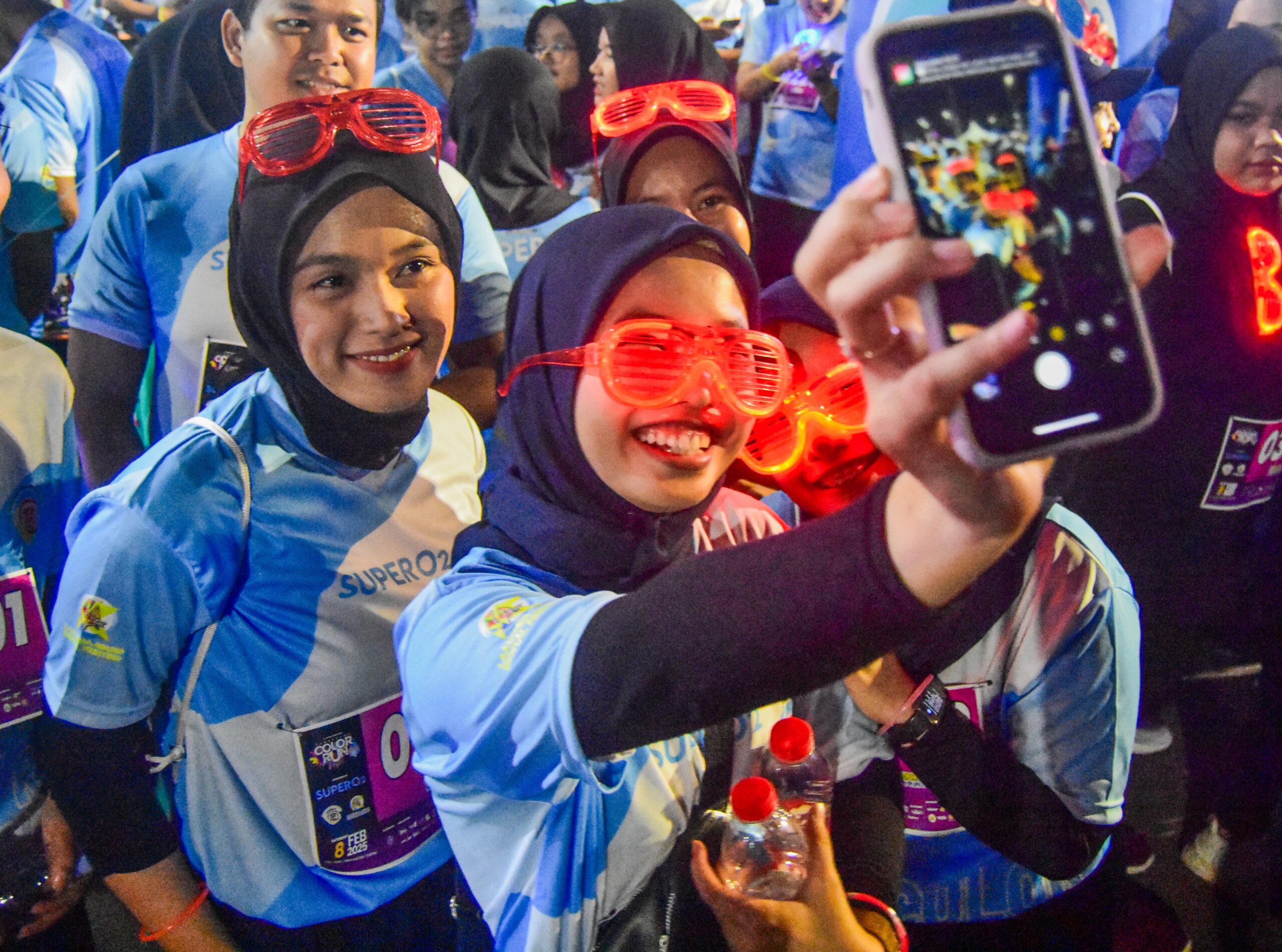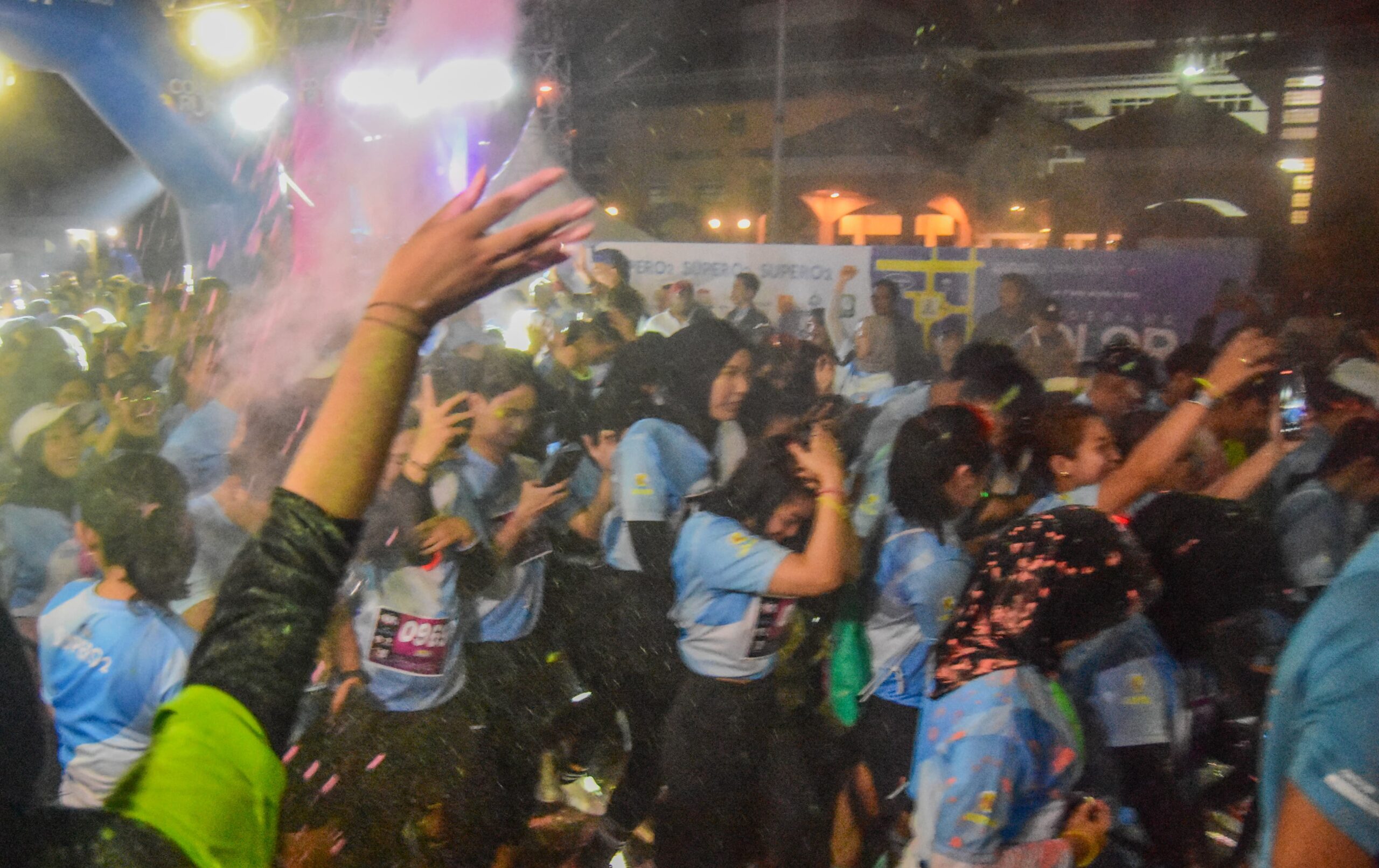 Peserta mengikuti Color Run Night di Taman Elektrik, Pusat Pemerintahan Kota Tangerang, Banten, Sabtu (08/02/2025).