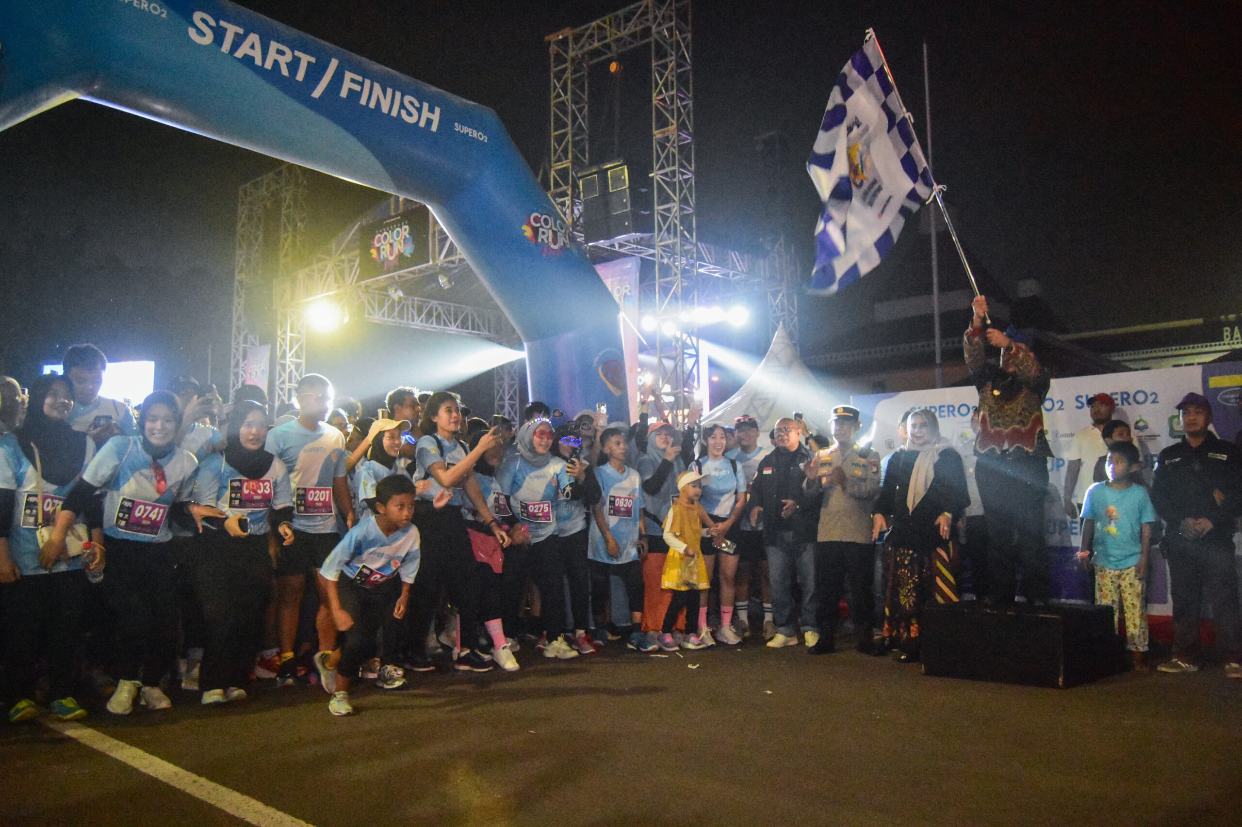 Ratusan peserta mengikuti Color Run Night 2025 yang diadakan Pemerintah Kota Tangerang dengan jarak 5 kilometer dalam menyambut HUT Kota Tangerang ke 32 Tahun. Foto : Ilham Herda Fauzi/LENSABANTEN