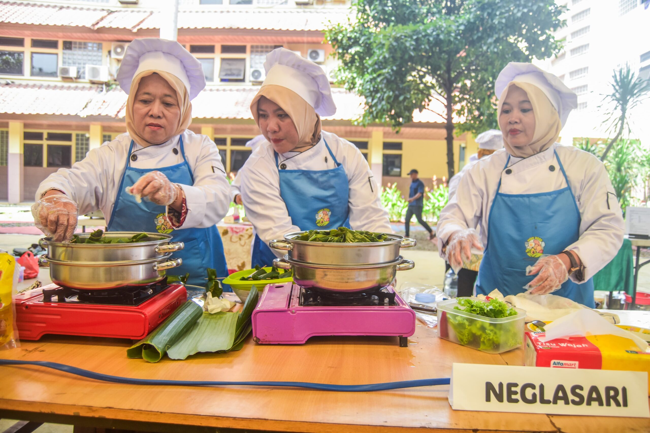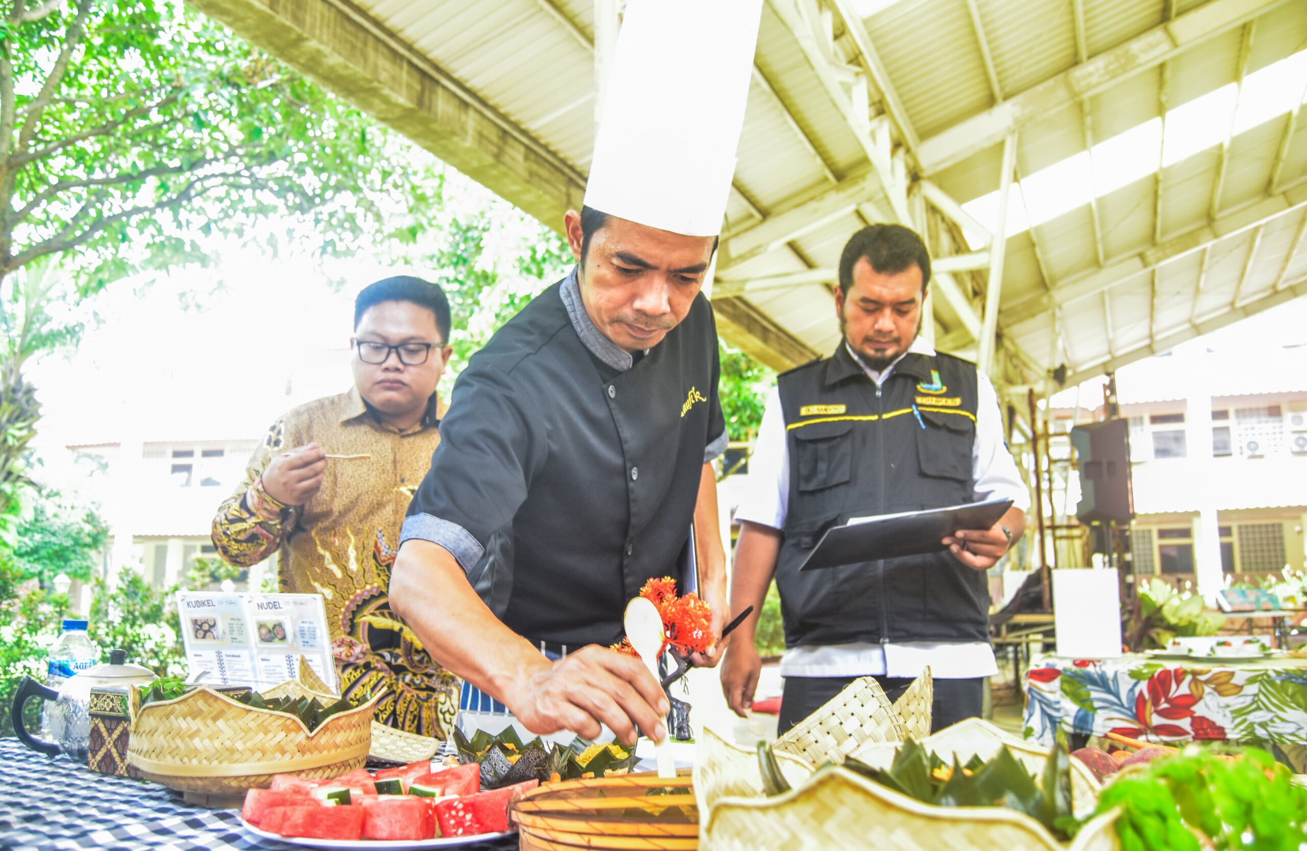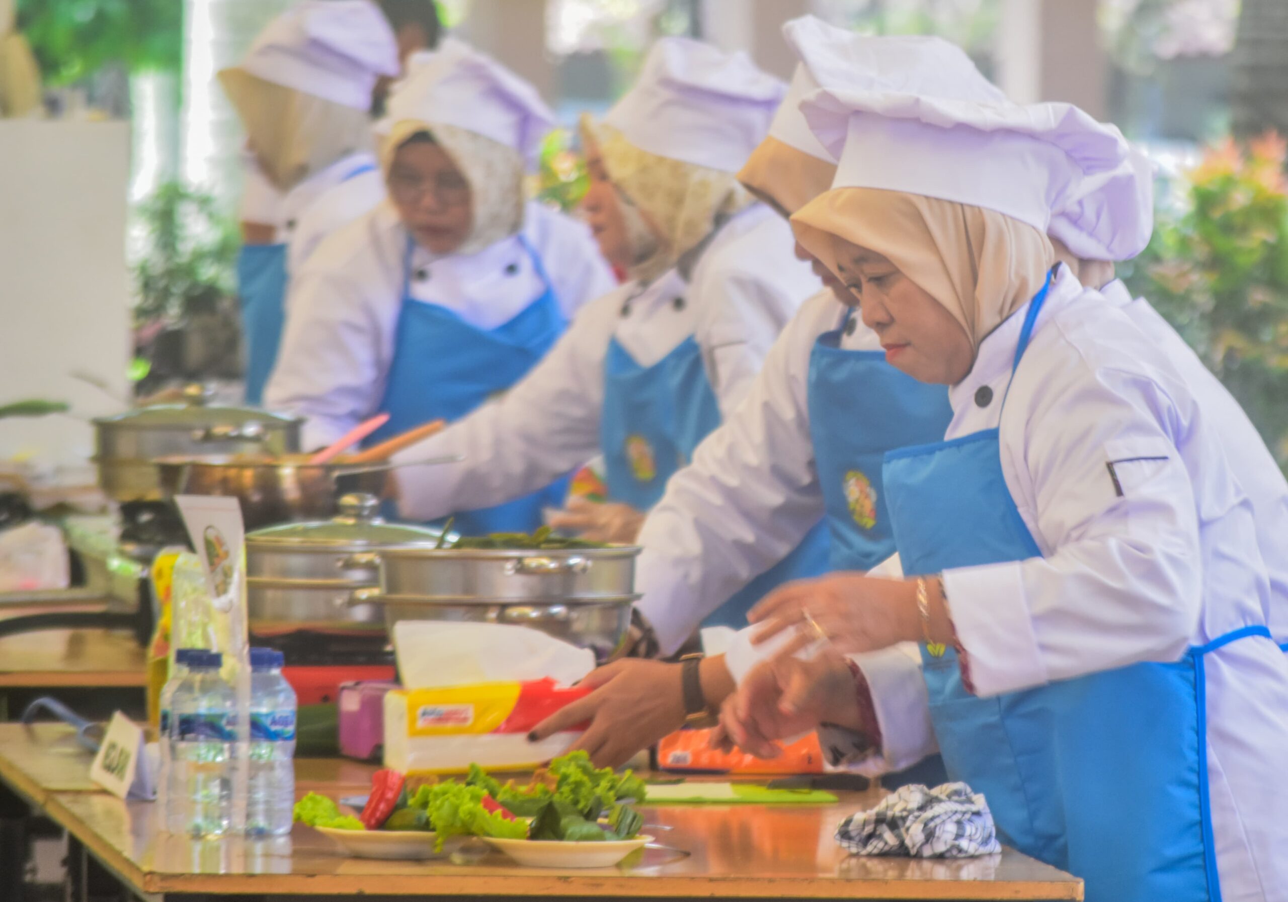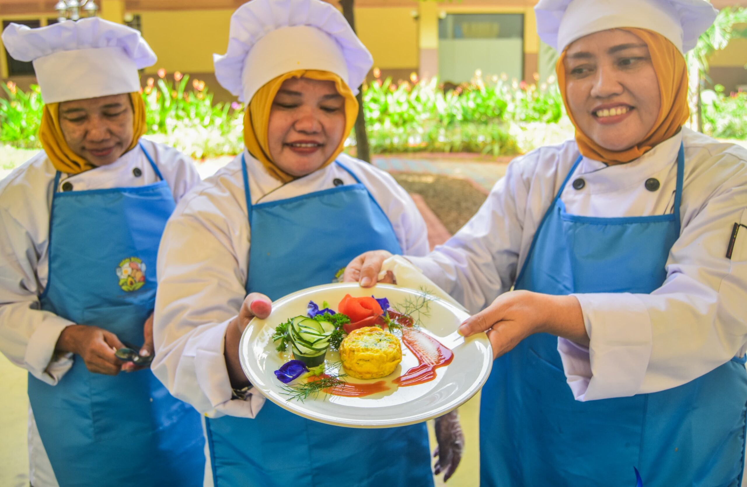 Kader Posyandu menujukan makanan yang dihidangkan di Plaza Pusat Pemerintahan Kota Tangerang, Banten, Rabu (12/02/2025). Dinas Kesehatan Kota Tangerang menggelar Perlombaan Kreasi Menu, dalam pemberian makanan tambahan (PMT) untuk balita dari umur 6 – 11 Bulan hingga 12 – 59 bulan dalam penyegahan stunting. Kegiatan ini diikuti oleh kader posyandu dari 13 Kecamatan se-Kota Tangerang serta dalam rangka menyambut HUT Kota Tangerang ke-32 dan memperingati Hari Gizi Nasional 2025. Foto : Ilham Herda Fauzi/LENSABANTEN