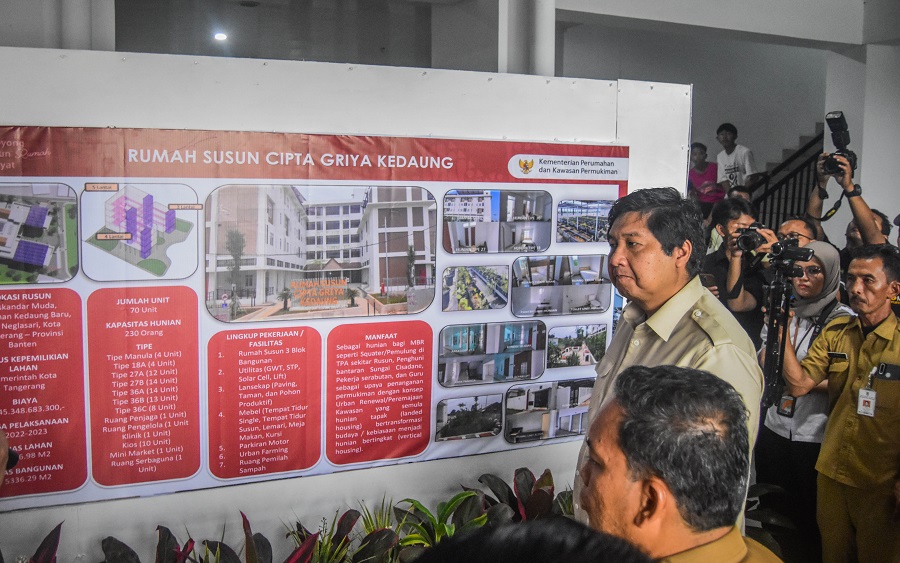 Menteri Perumahan dan Kawasan Pemukiman Maruarar Sirait meresmikan Rusun Cipta Griya Kedaung, Kota Tangerang, Banten, Selasa (14/01/2025). Menteri PKP bersama Mendagri meresmikan Rusun Cipta Griya Kedaung sekaligus meninjau langsung. Dalam Rusun Cipta Griya Kedaung terdapat 70 unit hunian yang mampu menampung 230 orang, dengan 7 tipe seperti tipe manula, tipe 18A, tipe 27A, tipe 27B, tipe 36A, tipe 36B dan tipe 36C. Foto : Ilham Herda Fauzi/LENSABANTEN