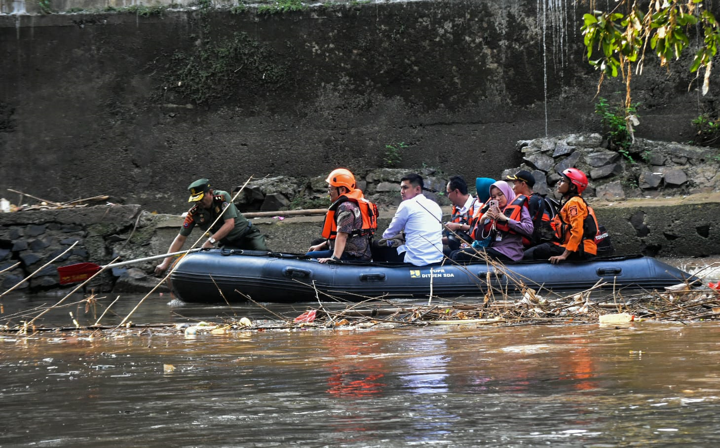 Gubernur Banten Andra Soni (tengah) bersama Wali Kota Tangerang Sachrudin dan Wali Kota Tangerang Selatan Benyamin menyusuri Kali Angke, Kota Tangerang, Banten, Rabu (23/07/2025). Gubernur Banten menyusuri Kali Angke sejauh 10 Kilometer menindak lanjuti instruksi dari Wakil Presiden Gibran Rakabuming Raka terkait mengatasi permasalah banjir di Tangerang. Foto : Ilham Herda Fauzi/LENSABANTEN