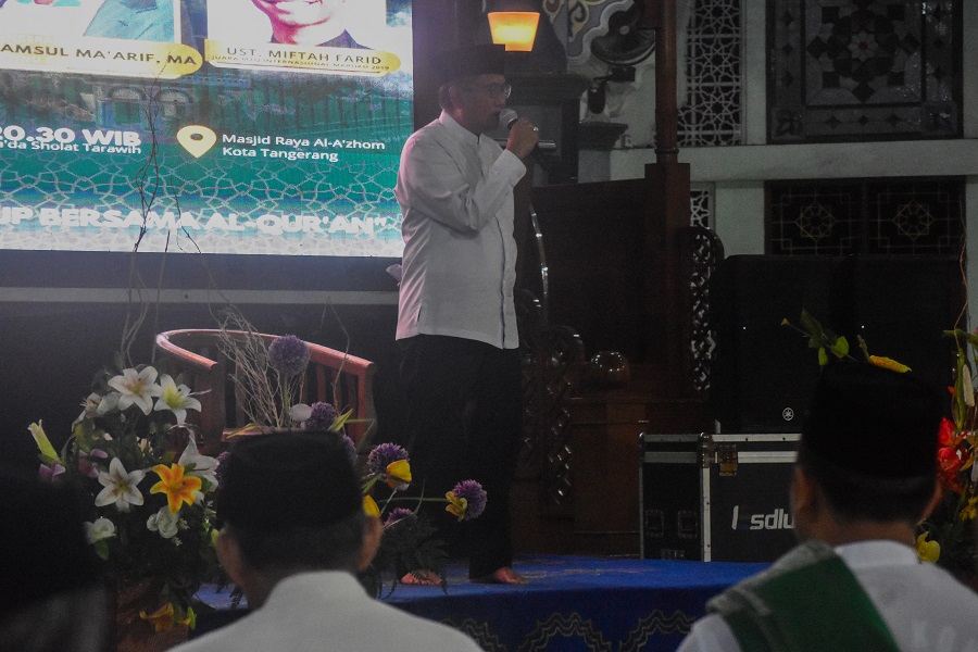 Pemerintah Kota Tangerang mengadakan malam Nuzulul Qur’an di masjid Raya Al-A’zhom Kota Tangerang, Banten, Selasa (26/03/2024) malam. Malam Nuzulul Qur’an ini dihadiri Sekertaris Daerah Kota Tangerang Herman Suwarman dan Ketua PWNU DKI Jakarta Dr. KH. Syamsul Ma’arif. Foto : Ilham Hedra Fauzi/LENSABANTEN