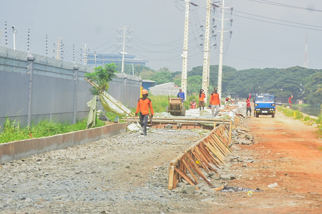 Pemerintah Kota Tangerang melalui Dinas Pekerjaan Umum dan Penataan Ruang (DPUPR) melakukan pembangunan jalan yang menghubungkan daerah Bayur dan Cadas sepanjang 2,2 Kilometer untuk mengurangi kemacetan di jalan tersebut. Foto : Ilham Herda Fauzi/LENSABANTEN
