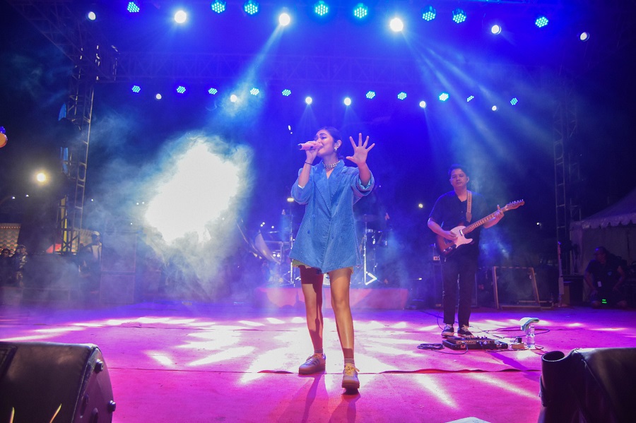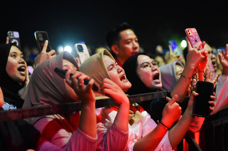 Band Geisha membawakan lagu-lagu buatan nya dalam acara Festival Cisadane ke-11, Kota Tangerang, Banten, Minggu (22/07/2024) Malam. Ratusan orang muda-mudi dan dewasa memadati panggung acara menyaksikan aksi Band Geisha. Foto : Ilham Herda Fauzi/LENSABANTEN