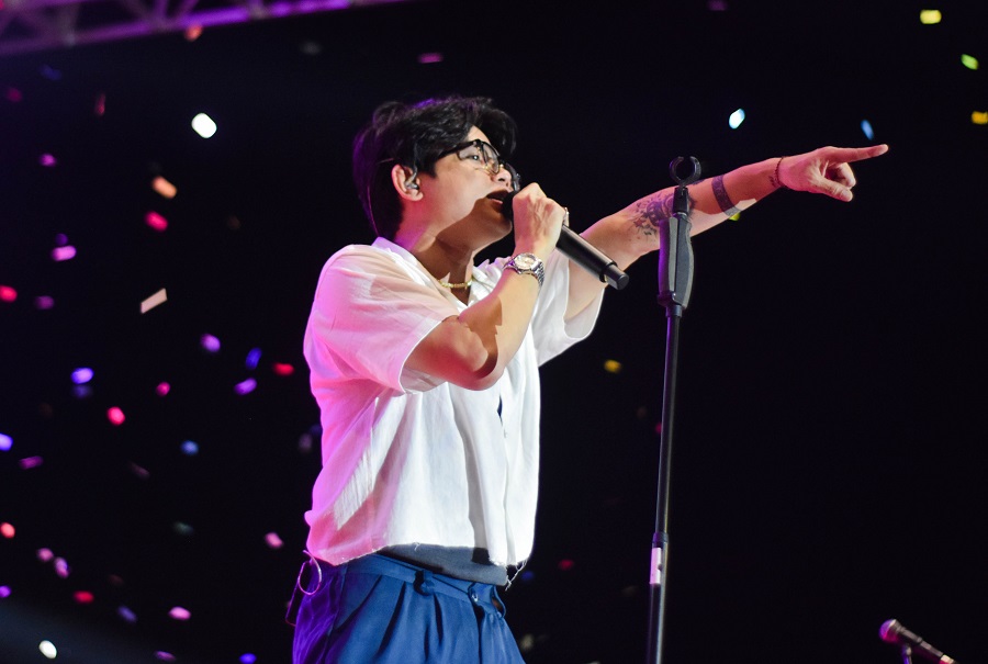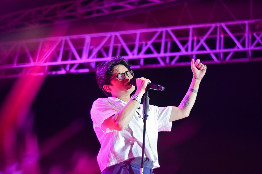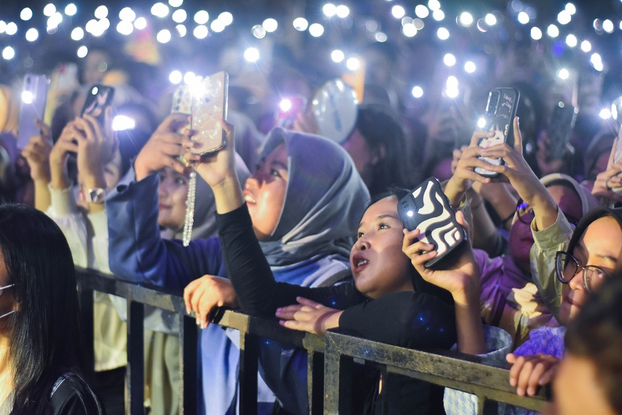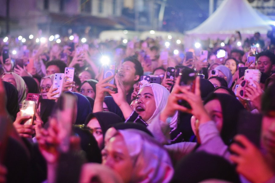 Band Juicy Luicy membawakan lagu nya di acara Festival Cisadane Kota Tangerang, Banten, Rabu (24/07/2024) malam. Penutupan Festival Cisadane dimeriahkan oleh band Juicy Luicy, yang di padati oleh para muda – mudi. Foto : Ilham Herda Fauzi/LENSABANTEN