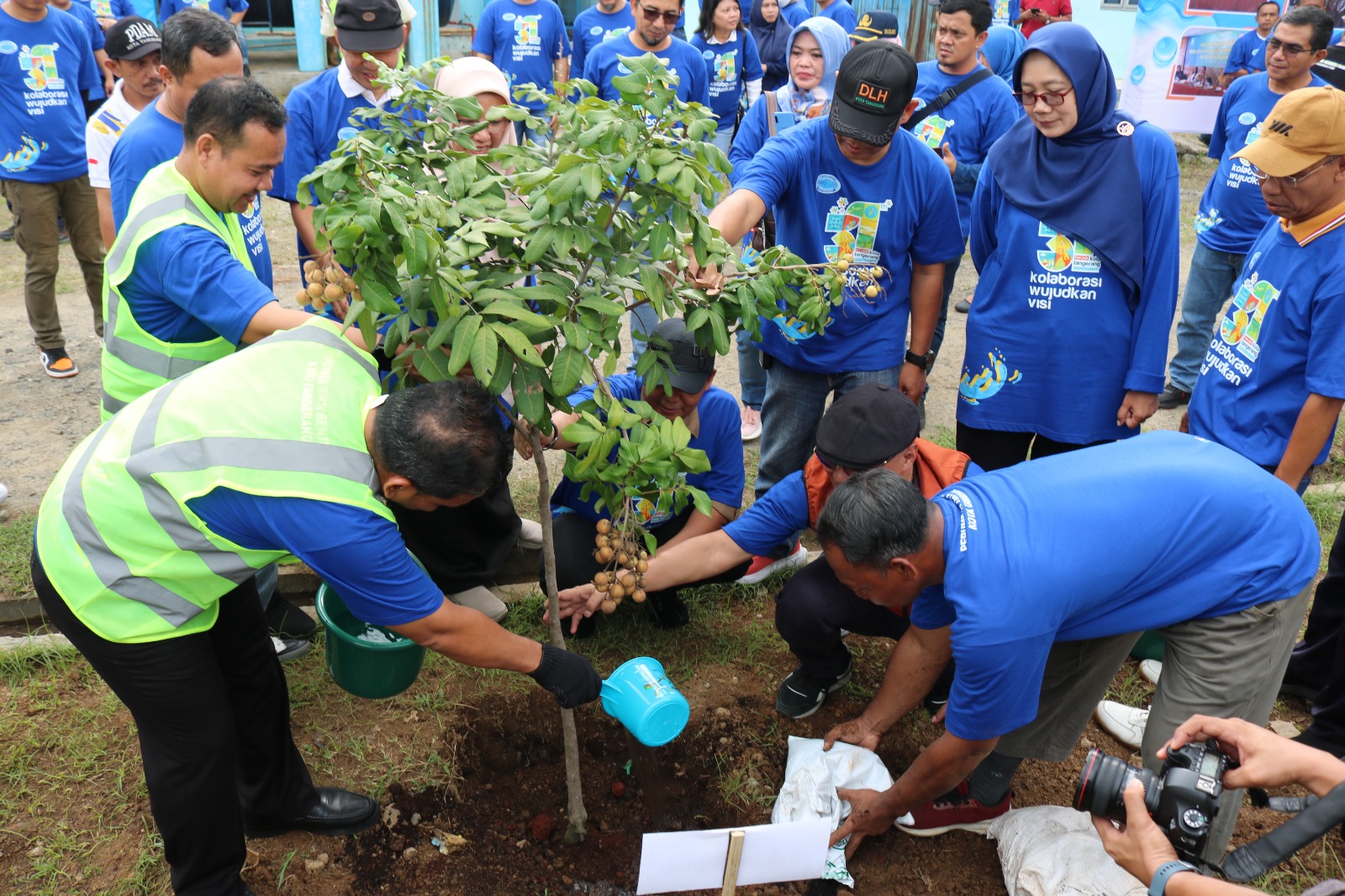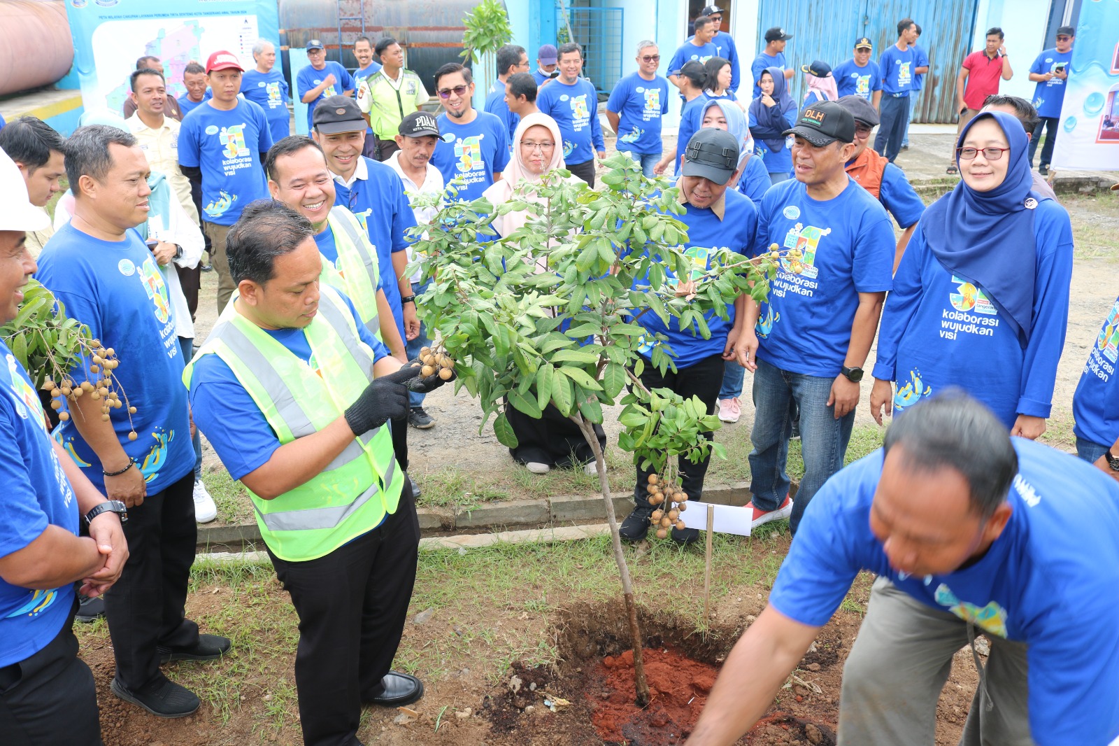 Perumda Tirta Benteng menggelar Gerakan Gotong Royong Tanam 3.100 Pohon di Bantaran Sungai Cisadane Pintu Air 10 hingga hulu Sungai Cisadane (Gunung Pangrango) bersama dengan Penjabat (Pj) Wali Kota Tangerang Nurdin, Sabtu (2/3/24) kemarin. Direktur Utama Perumda Tirta Benteng Kota Tangerang Doddy Effendi mengatakan, kegiatan tanam pohon ini merupakan salah satu rangkaian dari kegiatan Hari Jadi Kota Tangerang sampai dengan HUT Perumda Tirta Benteng yang jatuh pada Oktober mendatang. Foto: HO/Istimewa