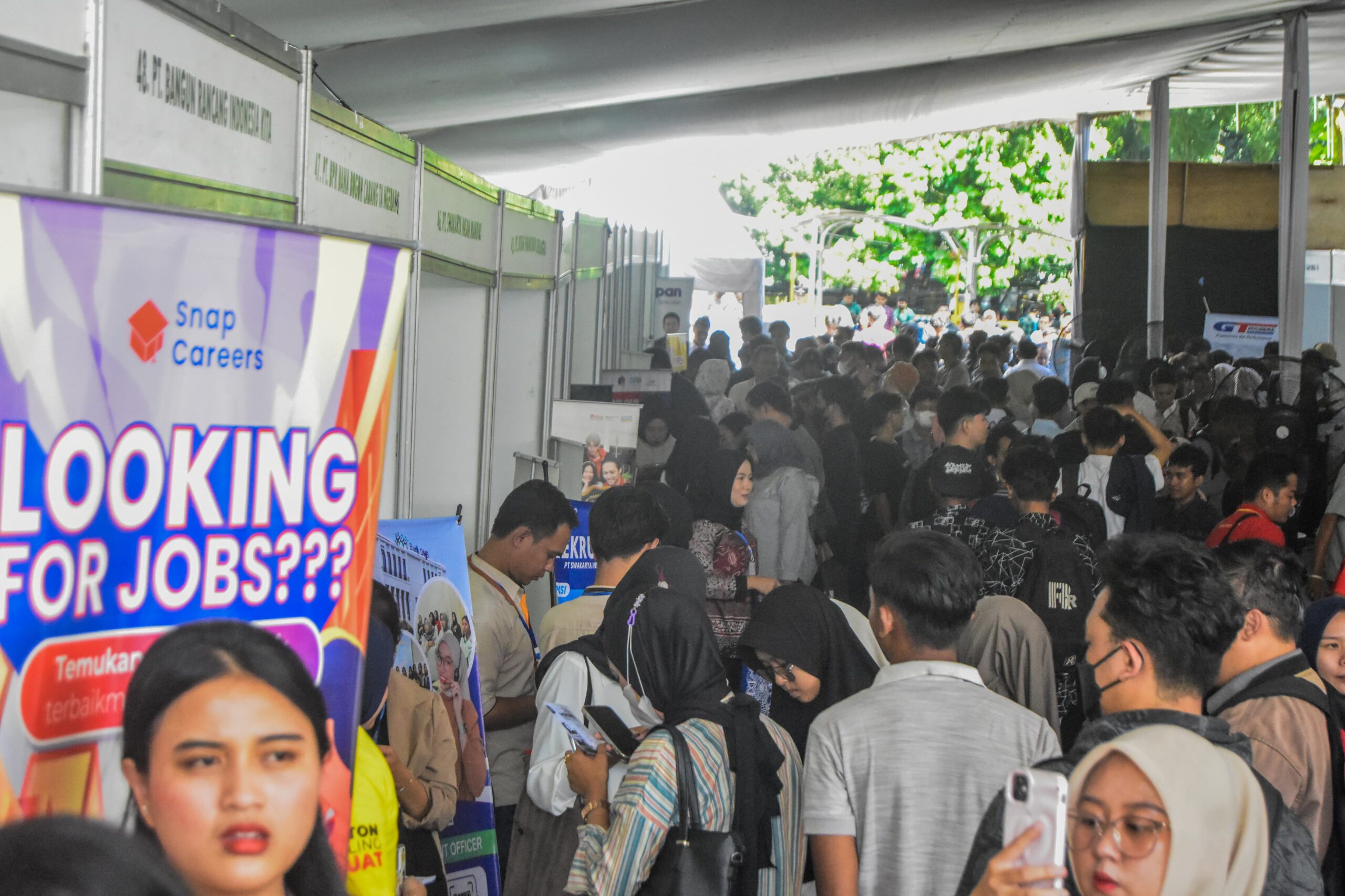 Pemerintah Kota Tangerang melalui Dinas Tenaga Kerja bersama stakeholder terkait berupaya menekan angka pengangguran dengan menyelenggarakan bursa kerja yang melibatkan 50 Perusahaan, 259 Jabatan, dan 8.897 lowongan kerja. Foto : Ilham Herda Fauzi/LENSABANTEN