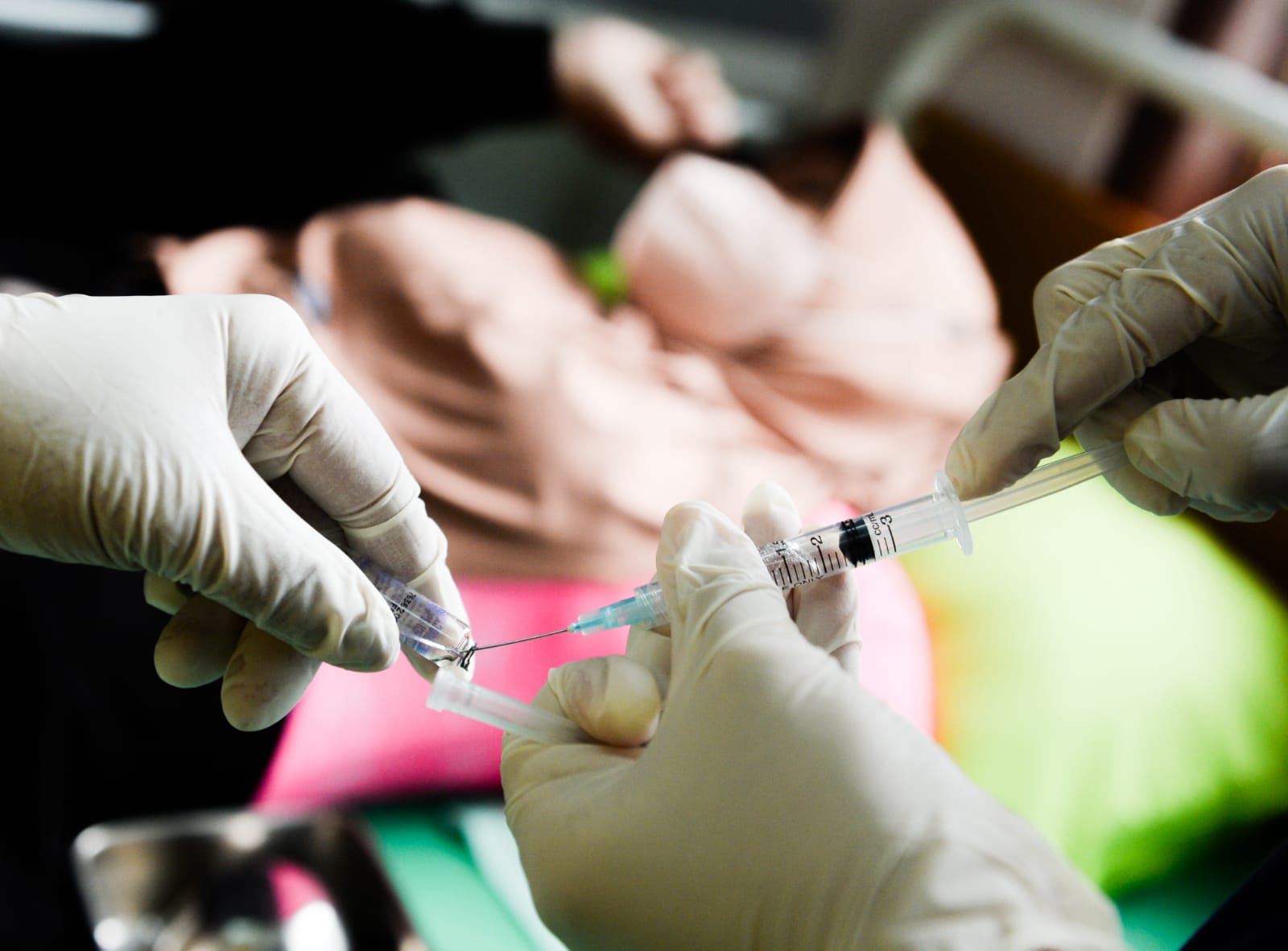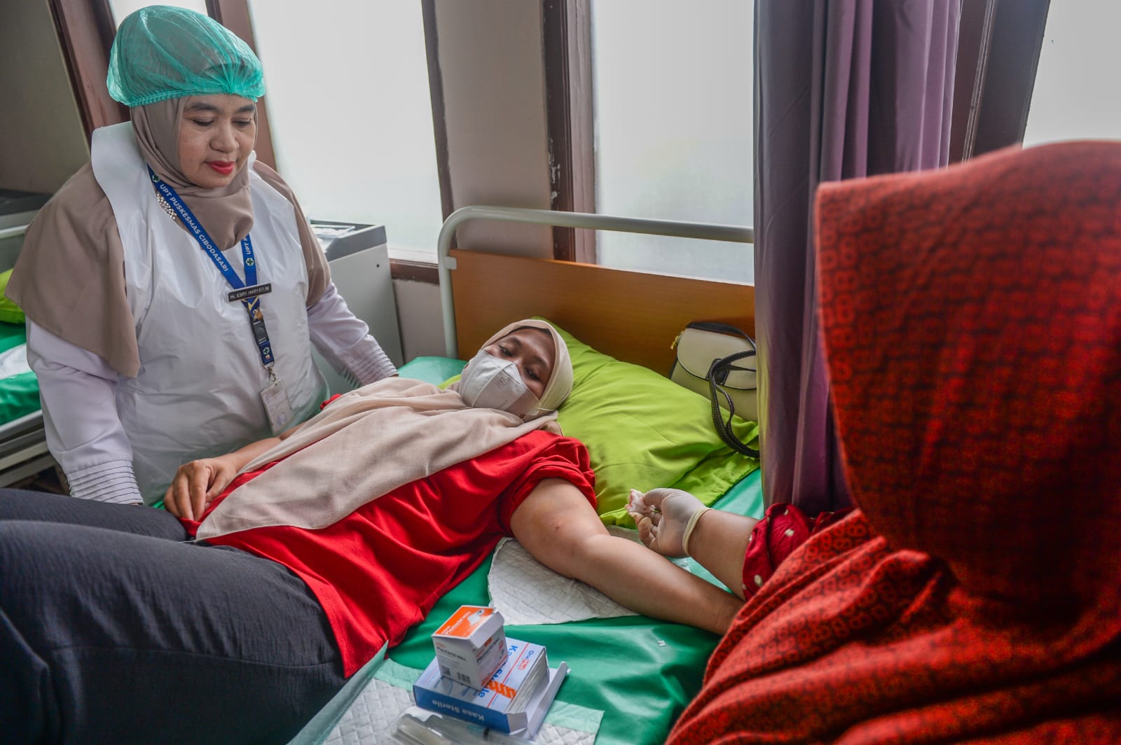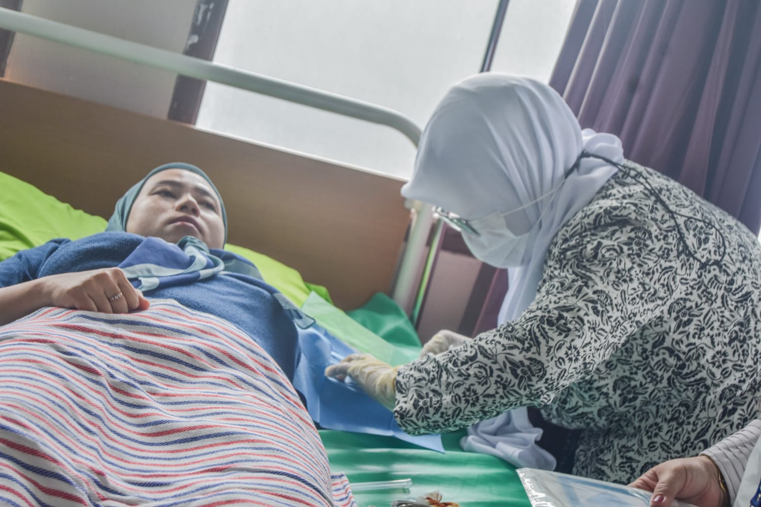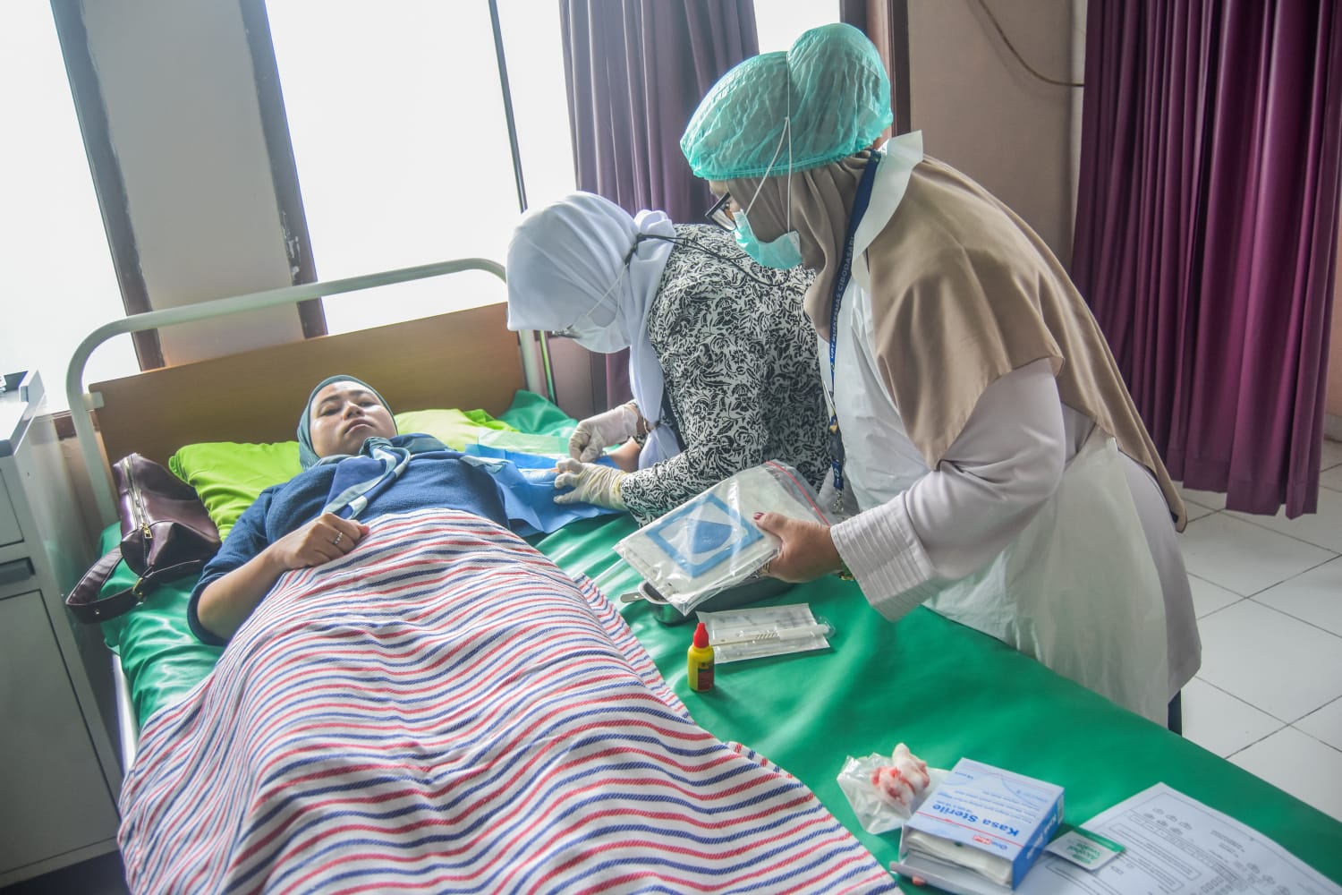 Petugas kesehatan memasang alat kontrasepsi jenis Implan kepada warga akseptor di UPT Puskesmas Cibodasari, Kota Tangerang, Banten, Rabu (19/02/2025).