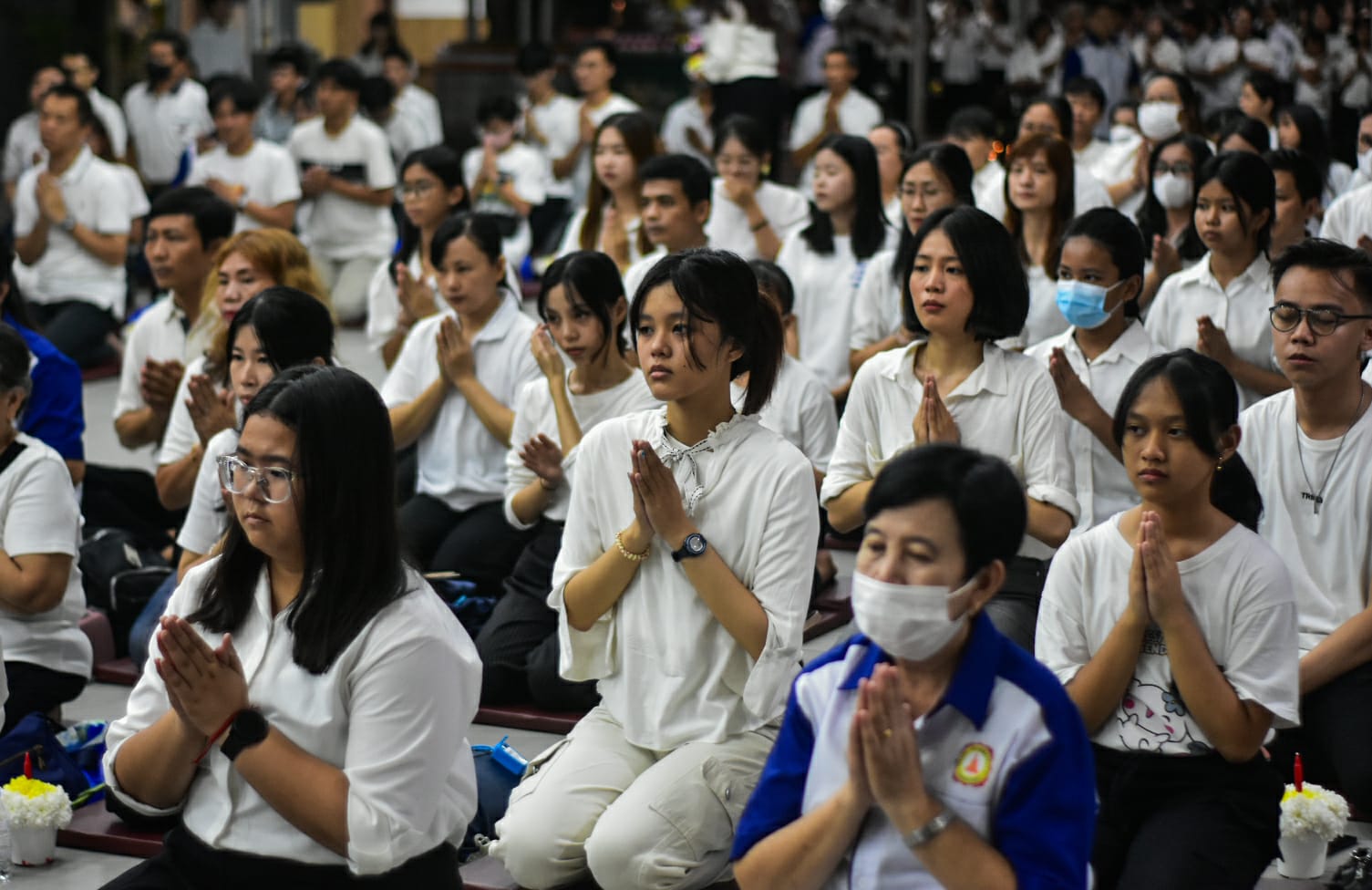 Umat Buddha melaksanakan Puja Bakti saat perayaan Hari Tri Suci Waisak 2569 BE/ 2025 di Vihara dhammapala, Kota Tangerang, Banten, Senin (12/05/2025).Hari Perayaan Hari Tri Suci Waisak di Vihara dhammapala diikuti oleh sekitar 600 Umat Budhha dengan mengusung tema Tingkatkan Pengendalian Diri dan Kebijaksanaan, Wujudkan Perdamaian Dunia. Foto : Ilham Herda Fauzi/LENSABANTEN