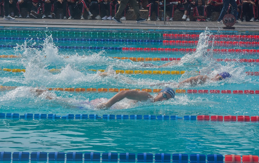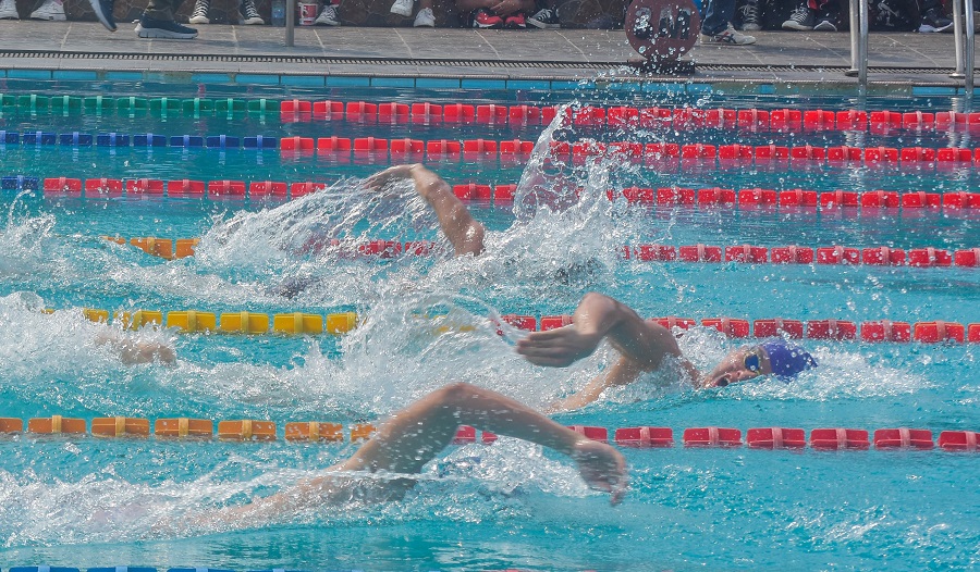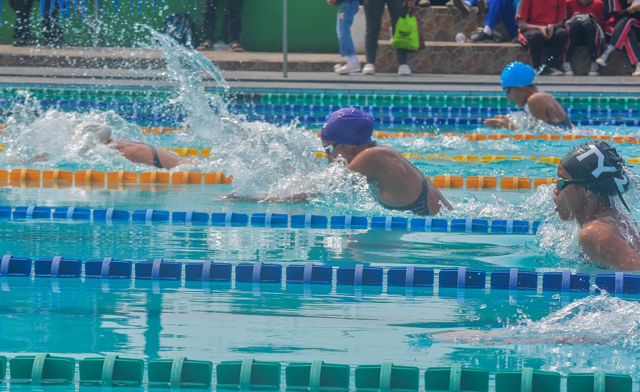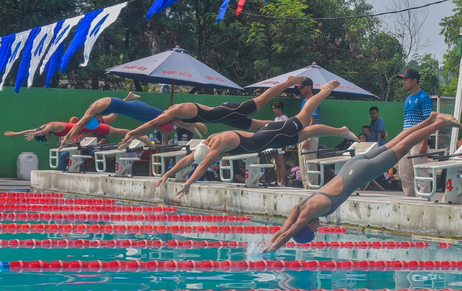 Para atlet dari setiap kontingen beradu cepat dalam perlombaan renang di Kolam Renang Asrama Yonif 203 Jatiuwung, Kota Tangerang, Banten, Senin (10/06/2024). Cabang Olahraga (Cabor) Renang Kota Tangerang dengan katagori putra dan putri 50 meter gaya bebas, 50 meter gaya punggung, 50 meter gaya kupu-kupu, 50 gaya dada, 100 meter gaya bebas, 100 meter gaya punggung, 100 meter gaya kupu-kupu, 100 meter gaya dada, 200 meter gaya bebas, dan 200 meter gaya dada. Meraih mendali sementara emas 2, perak 6 dan perunggu 2 dalam ajang Pekan Olahraga Pelajar Daerah (POPDA XI) Provinsi Banten. Foto : Ilham Herda Fauzi/LENSABANTEN