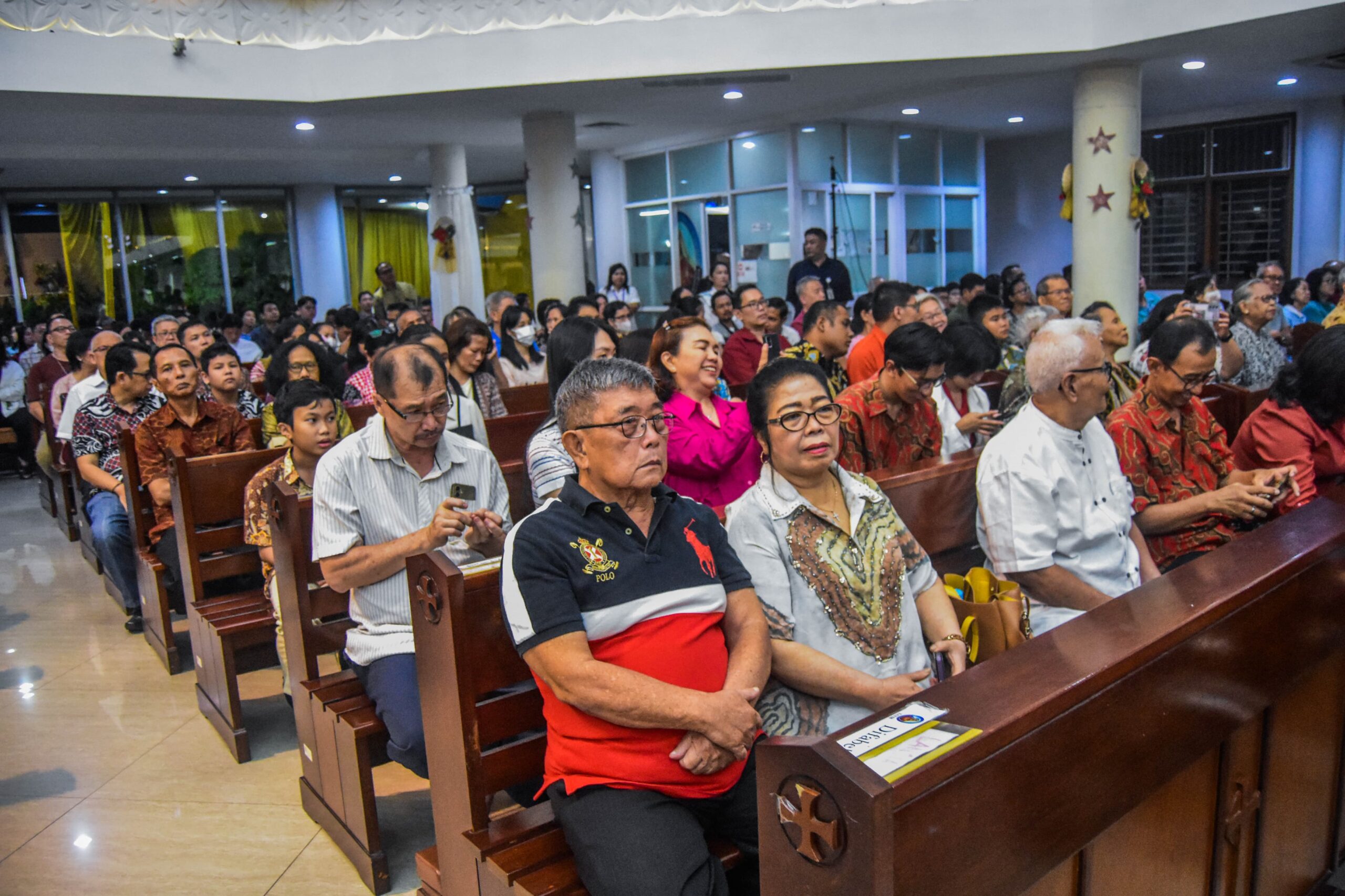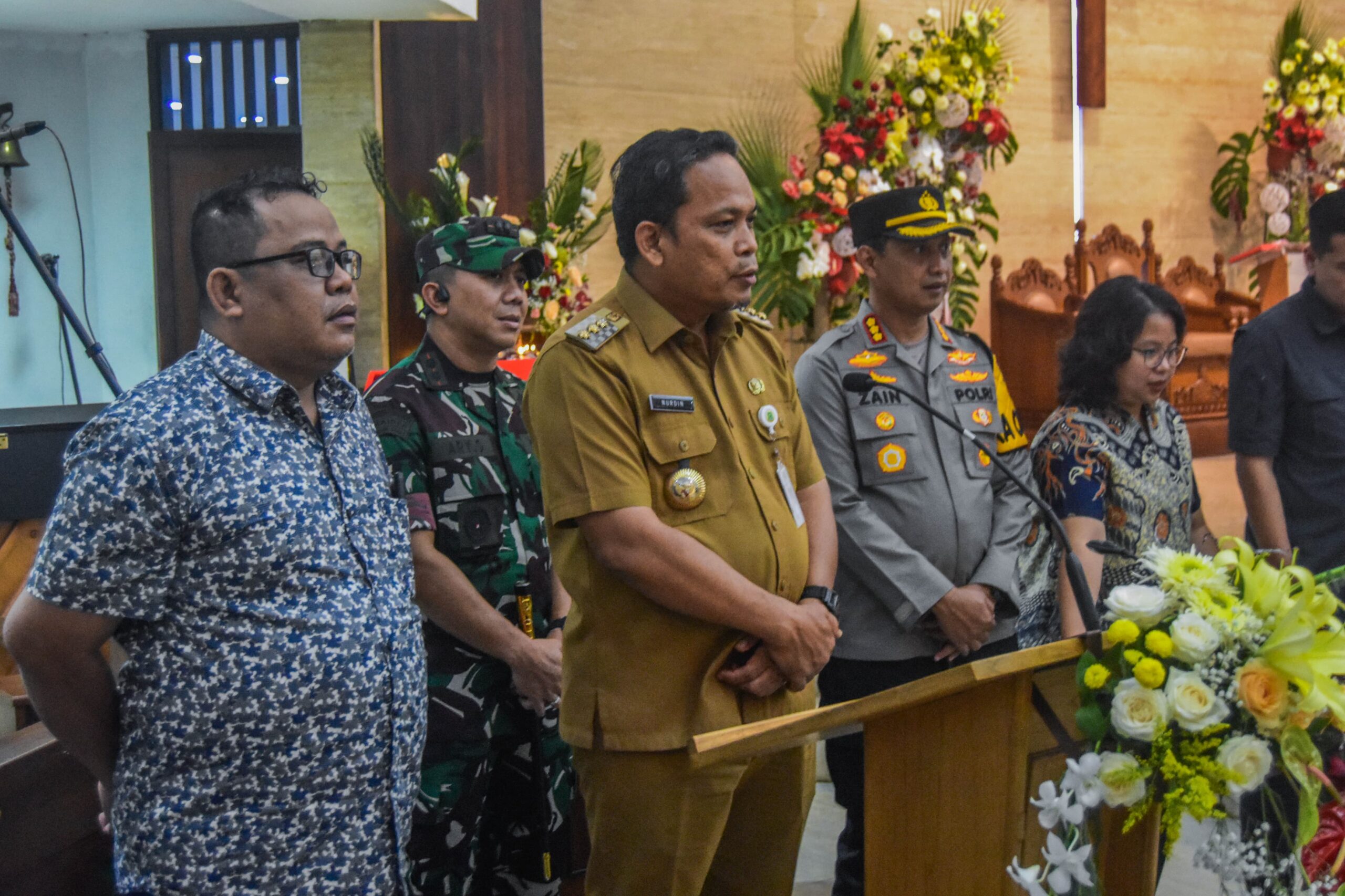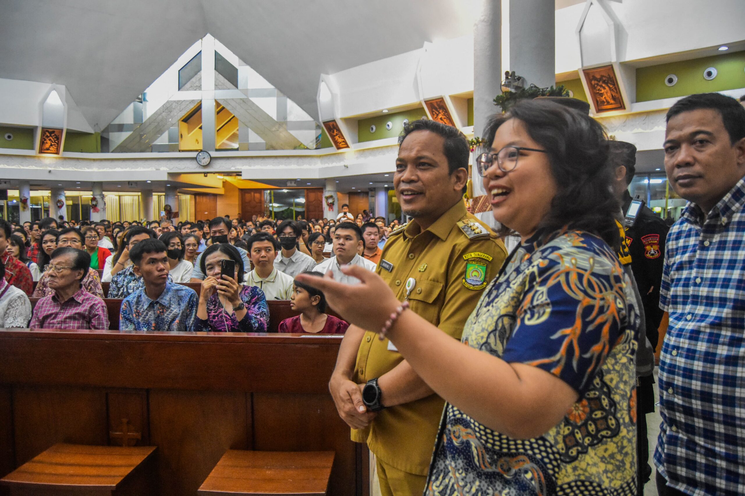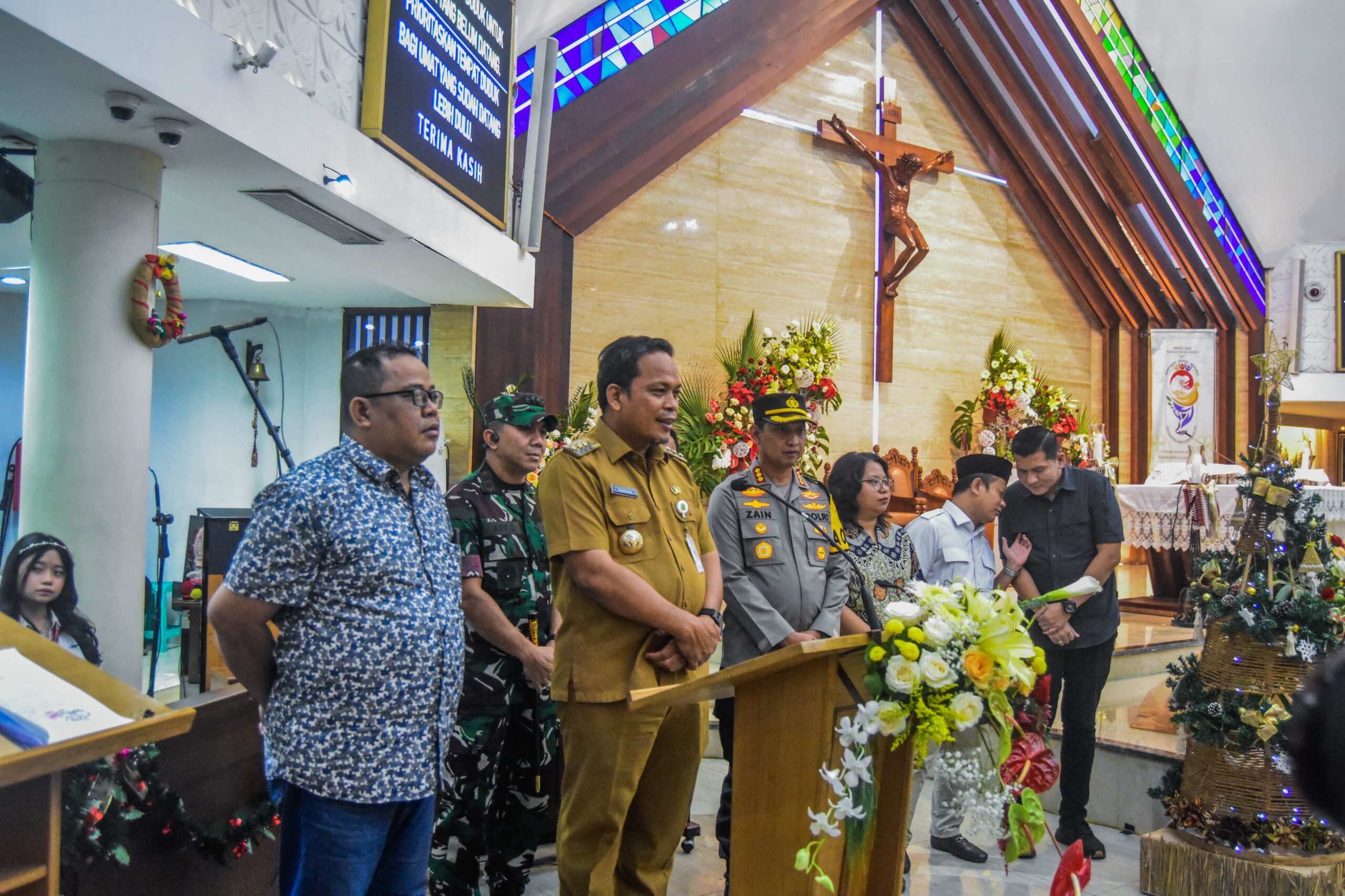 Penjabat (Pj)Wali Kota Tangerang Dr. Nurdin menijau malam misa di Gereja Hati Santa Perawan Maria Tak Bernoda, Kota Tangerang, Banten, Selasa (24/12/2024) malam. Pj Wali Kota Tangerang bersama polres Tangerang kota, Kodim 0506 Tangerang dan Forkopimda menijau langsung perayaan malam natal di gereja Hati Santa Perawan Maria Tak Bernoda dan Gereja GKI Modernland. Dalam peninjauan PJ Wali Kota memastikan perayaan malam natal berjalan Khidmat, Aman dan kondusif. Foto : Ilham Herda Fauzi/LENSABANTEN