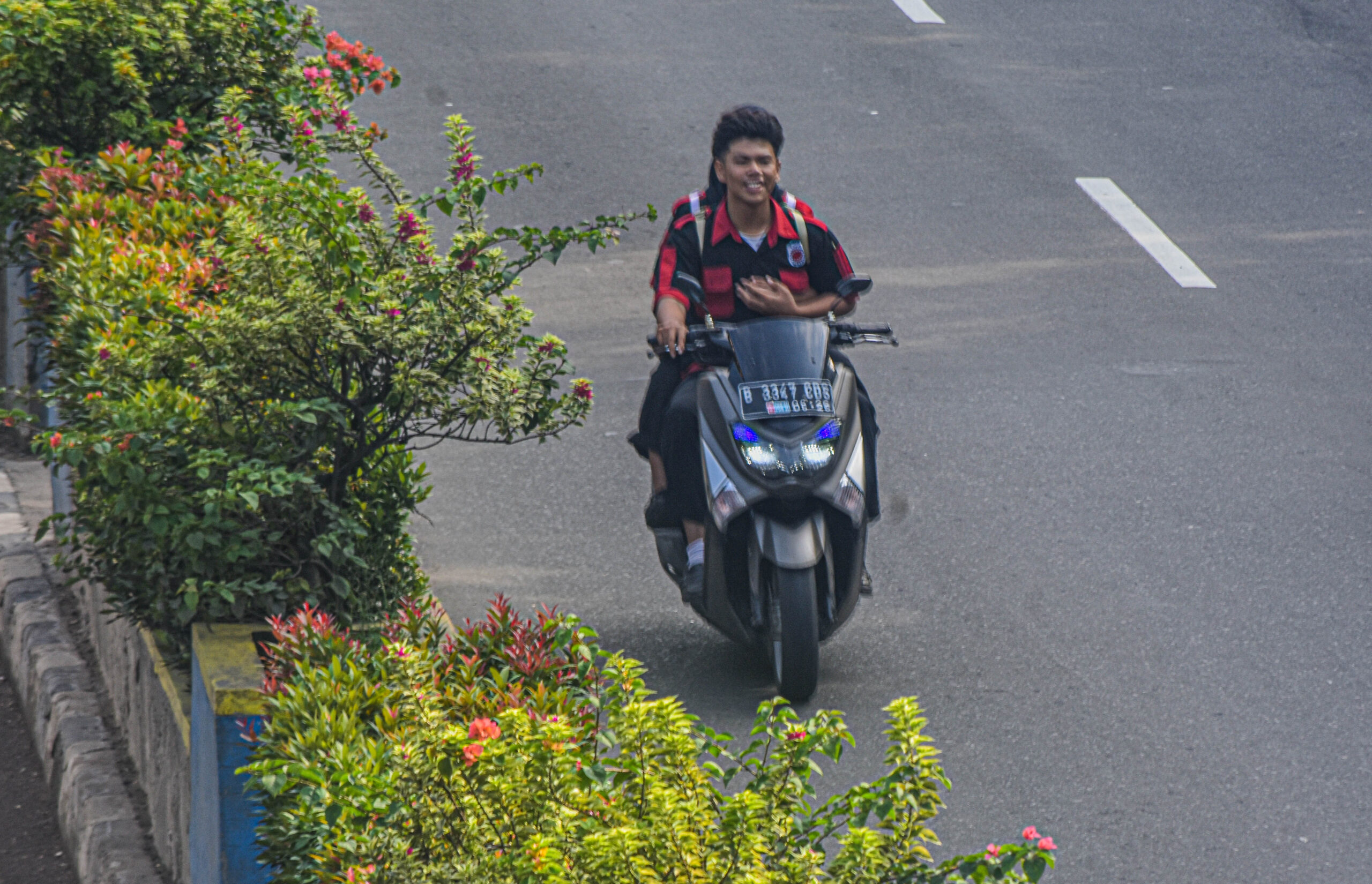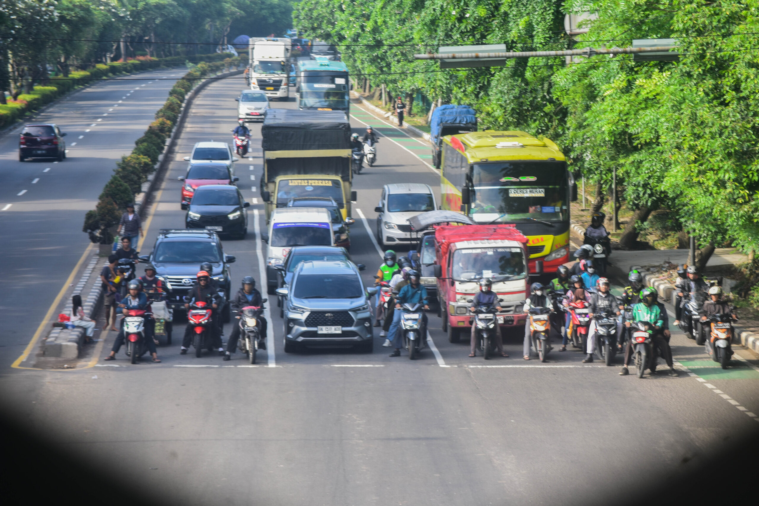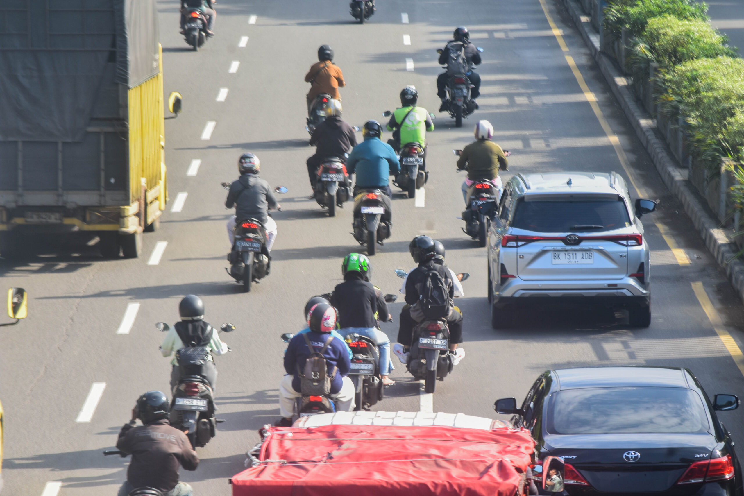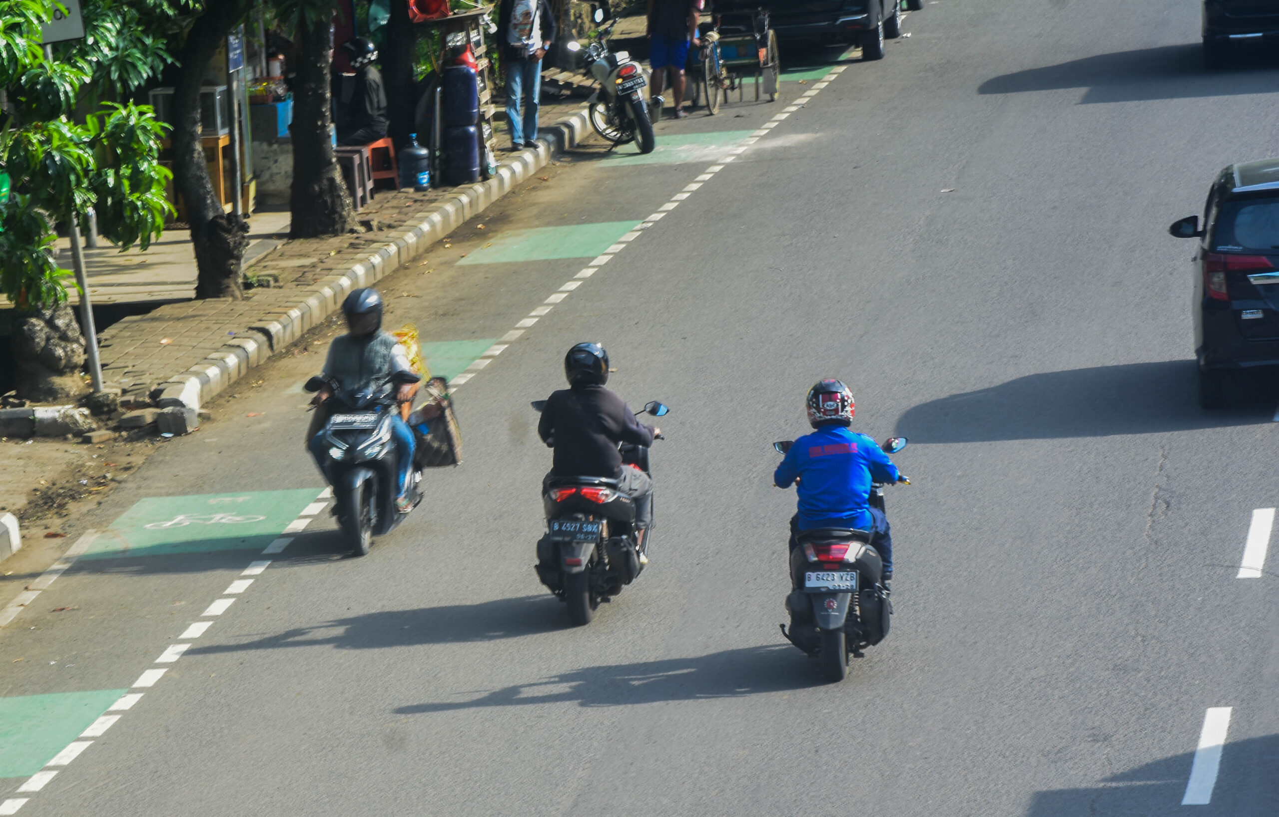 Pengendara sepeda motor melawan arah di Jln. Jendral Sudirman, Kota Tangerang, Banten, Jumat (10/01/2025).