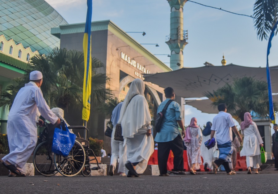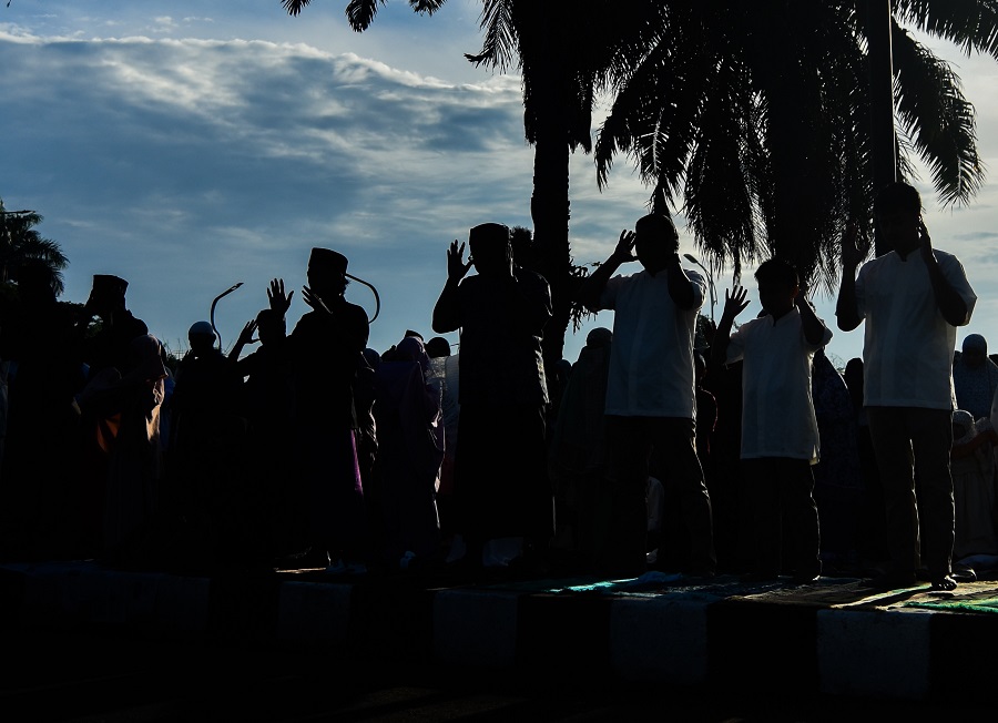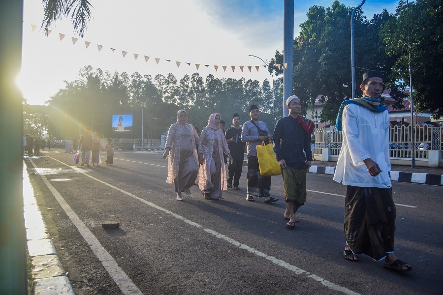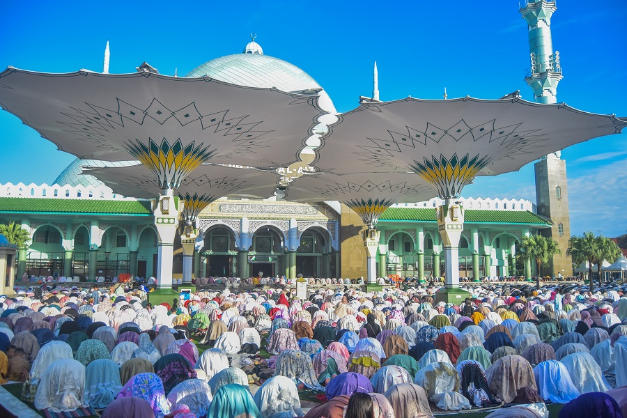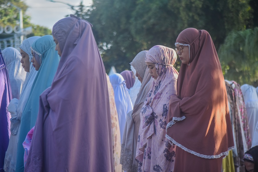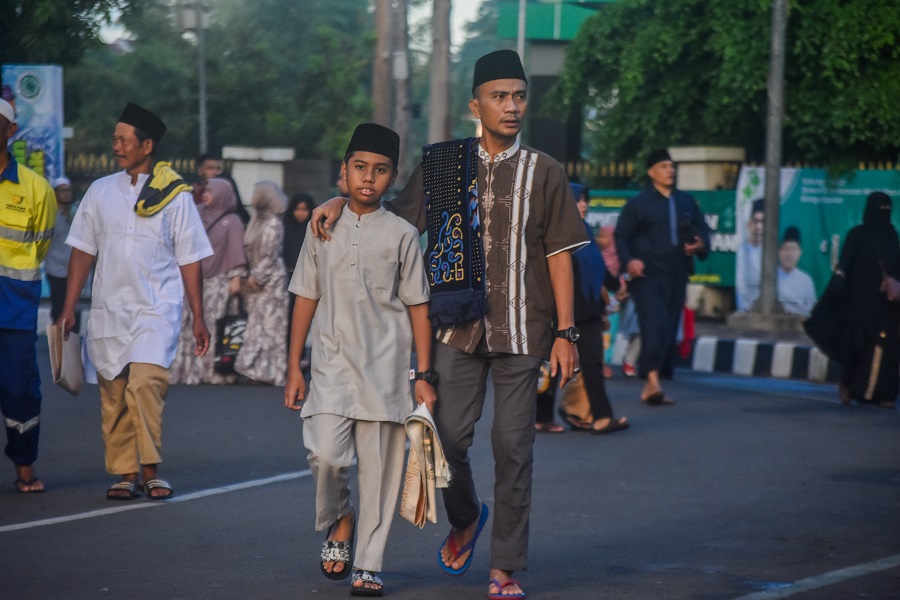 Umat Islam melaksanakan Shalat IdulFitri 1445 Hijriyah di Masjid Raya Al-A’zhom, Kota Tangerang, Banten, Rabu (10/04/2024) pagi hari. Pelaksanaan Shalat IdulFitri tersebut sesuai dengan keputusan pemerintah pusat yang menetapkan IdulFitri 1445 Hijriyah jatuh pada Rabu (10/04/2024). Foto : Ilham Herda Fauzi/LENSABANTEN