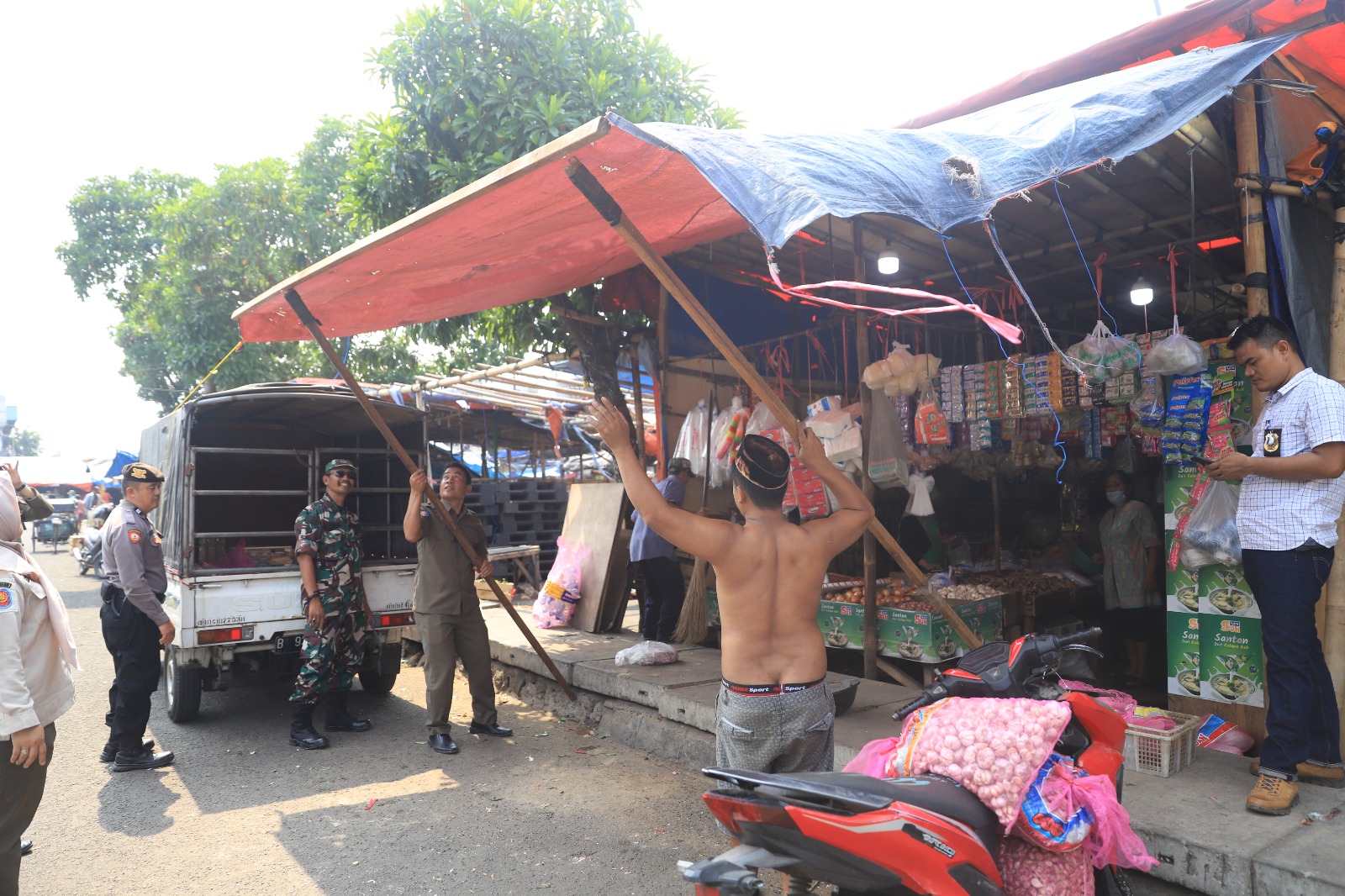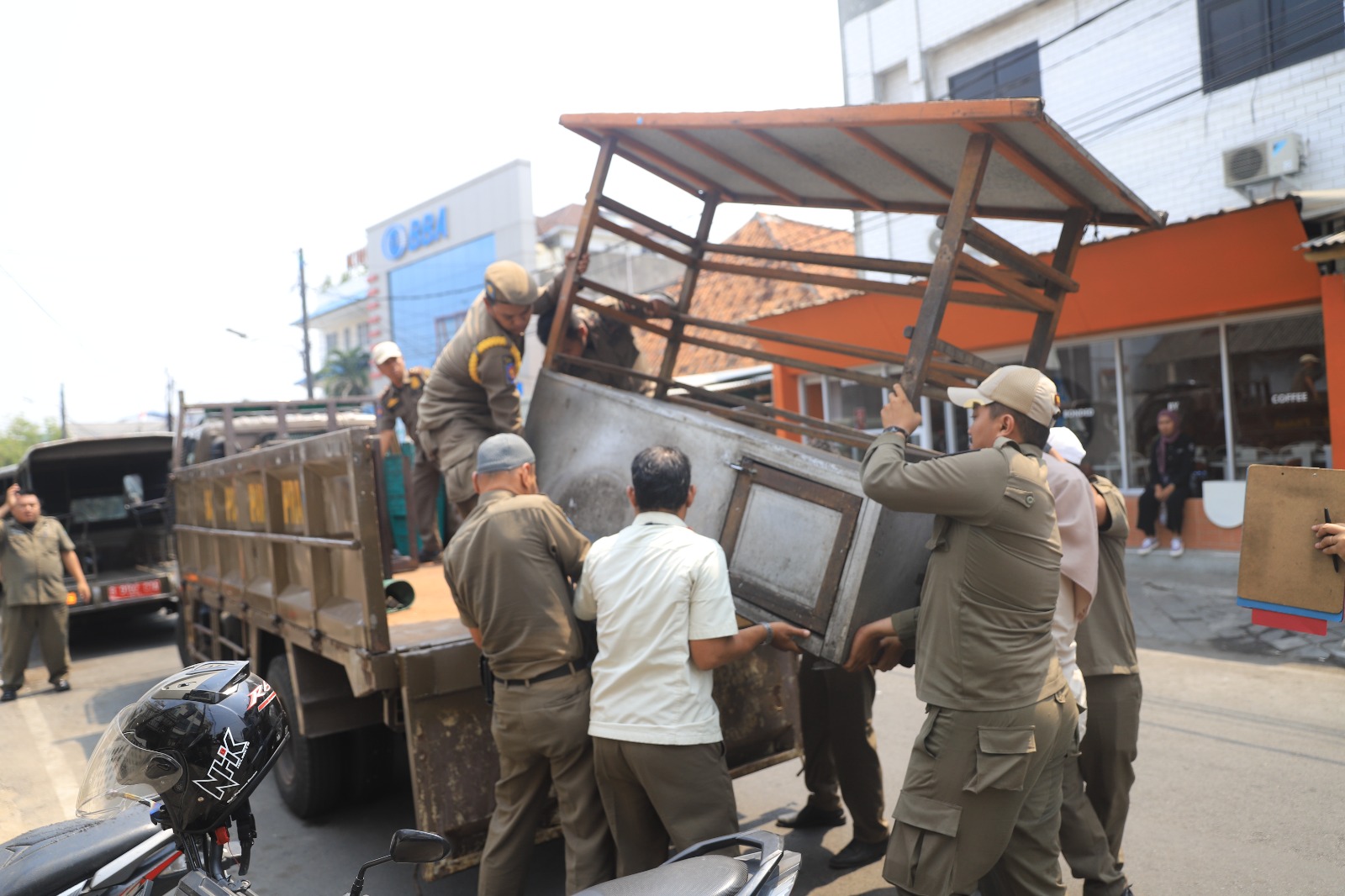 menjaga keindahan dan kebersihan ruang-ruang publik di Kota Tangerang. Pemerintah Kota (Pemkot) Tangerang melalui Satuan Polisi Pamong Praja (Satpol PP) Kota Tangerang melakukan giat penertiban Pedagang Kaki Lima (PKL) hingga spanduk atau baliho liar yang tersebar di berbagai area strategis, Rabu 18 Oktober 2023. Foto : HO/Lensabanten