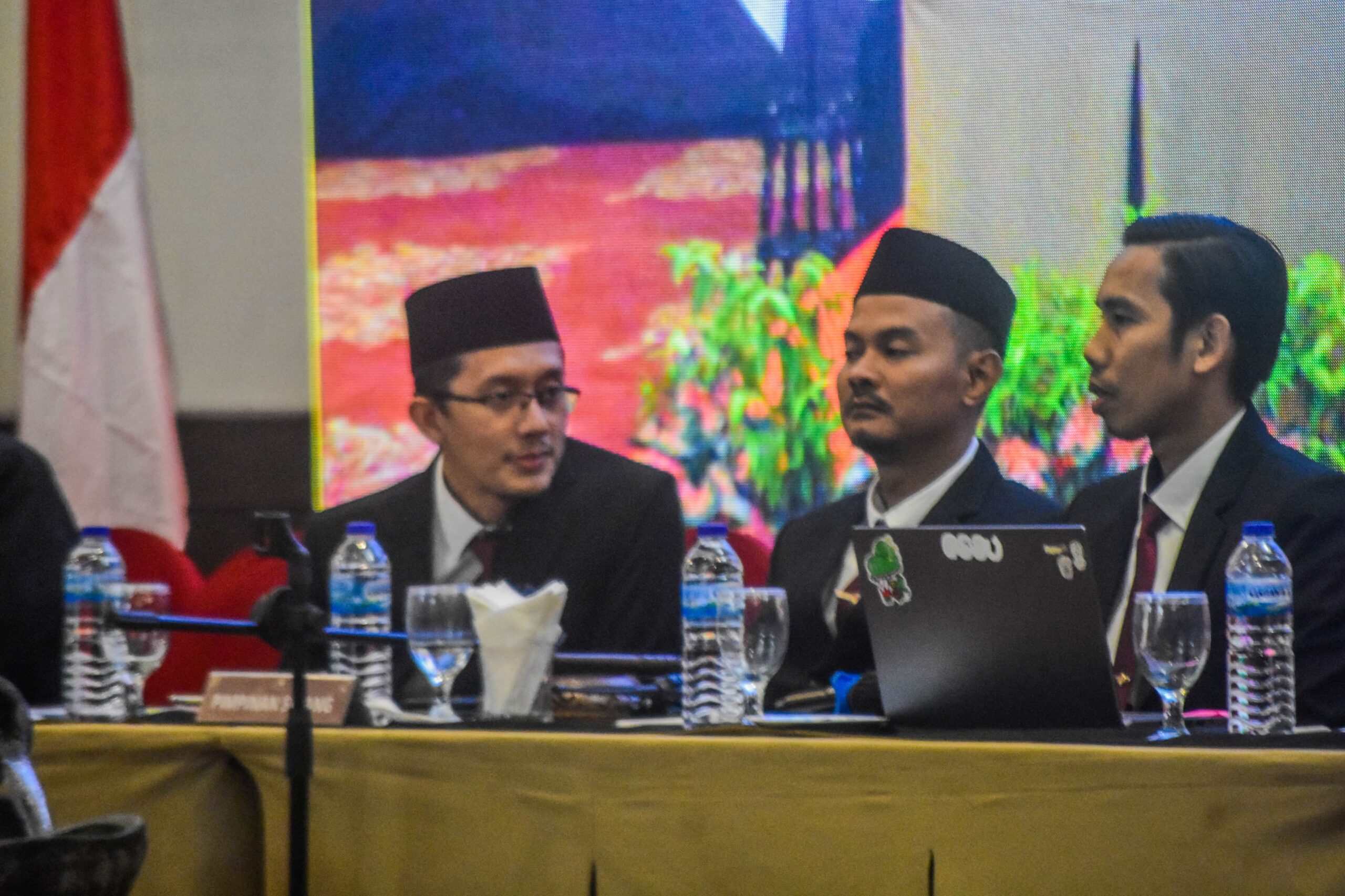 Ketua Komisi Pemilihan Umum Kota Tangerang Qori Ayatullah (tengah) memimpin sidang pleno KPU Kota Tangerang di Hotel Days In, Kota Tangerang, Banten, Selasa, (03/12/2024). Komisi Pemilihan Umum KPU Kota Tangerang mulai melakukan sidang pleno rekapitulasi dan penetapan hasil penghitungan perolehan suara tingkat kota Tangerang dan provinsi tahun 2024. Dalam sidang pleno dihadiri lengkap, mulai dari KPU, Bawaslu, Panitia Pemilihan Kecamatan (PPK), hingga saksi perwakilan dari partai politik (Parpol). Sidang Pleno Terbuka Kota Tangerang akan berlangsung hingga Kamis 05 Desember 2024. Foto : Ilham Herda Fauzi/LENSABANTEN