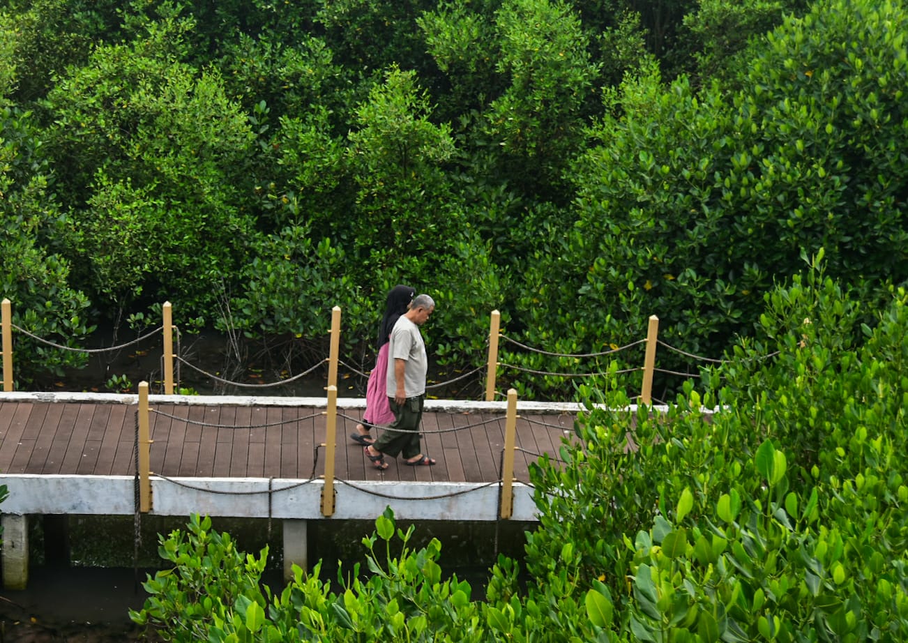 Obyek wisata Taman Mangrove Ketapang menawarkan pemandangan hutan mangrove yang menjadi salah satu wisata favorit bagi wisatawan Tangerang saat hari libur panjang Hari Raya Waisak 2025. Foto : Ilham Herda Fauzi/LENSABANTEN