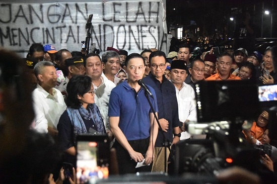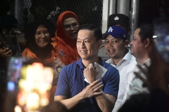 Mantan Menteri Perdagangan Thomas Trikasih Lembong atau Tom Lembong menyapa pendukung usai bebas dari Rumah Tahanan (Rutan) Cipinang, Jakarta Timur, hari ini, Jumat (1/8/2025). Diketahui Oktober 2024, Kejaksaan Agung menetapkan Tom Lembong sebagai tersangka kasus impor gula. Kasus ini terkait dengan impor gula ketika Tom menjabat sebagai Mendag pada peridiode 2015-2016. Presiden Prabowo Subianto pada Kamis, 31 Juli kemarin memberikan abolisi untuk Tom Lembong. Foto : Ilham Herda Fauzi/LENSABANTEN