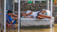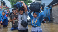 Seorang warga duduk di pelataran rumah yang tergenang banjir di Gang H. Sadar Kelurahan Cipondoh, […]