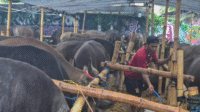 Seorang petugas memberikan rumput kepada sapi di Lapak Sahabat Qurban, di Jln. Hasyim Asy’ari, Kelurahan […]