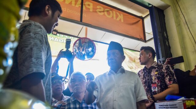 Menteri Dalam Negeri Indonesia Tito Karnavian (Tengah) berbincang dengan pedangan cabai di Pasar Induk Tanah […]
