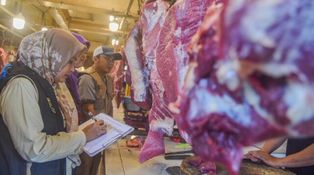 Sejumlah petugas Dinas Pertanian dan Ketahanan Pangan Provinsi Banten mengecek daging ayam di Pasar Cikupa, […]