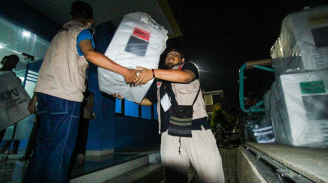 Sejumlah anggota PPS mendistribusikan logistik kotak suara dan surat suara ke tempat-tempat TSP di […]