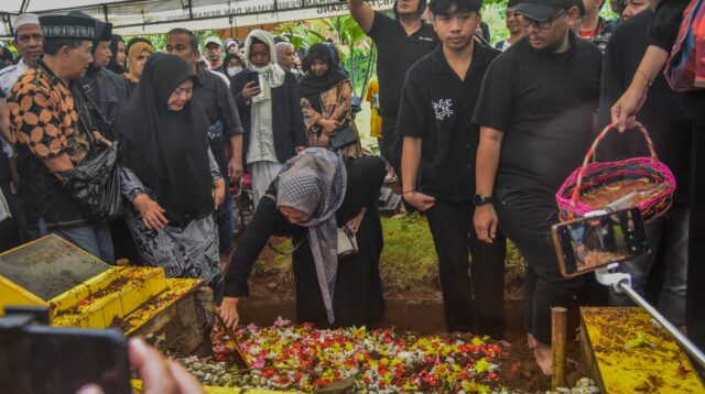 Istri pelawak senior Abah Qomar, Siti Maryam mengikuti prosesi pemakaman jenazah suaminya Nurul Qomar di TPU Carang […]