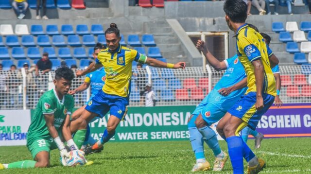 Tim Persatuan Sepak Bola Kota Persikota Tangerang (kosum kuning) melakukan penyerang saat melawan Persab Brebes (kostum […]