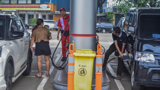 Petugas melakukan pengisian bahan bakar konsumen di SPBU Rest Area Pinang Point 14B, Kota Tangerang, Banten, Selasa […]