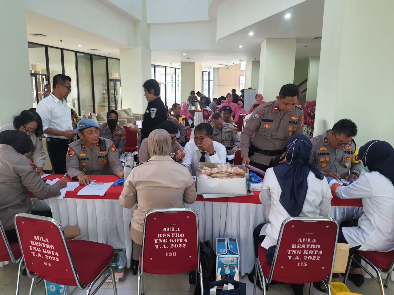 Pengecekan ini untuk mendiagnosa tekanan darah tinggi dan pemeriksaan gula darah, digelar di Lobby lantai.dasar Gedung Mapolres Metro Tangerang Kota, Babakan. Senin, 22 Januari 2024.