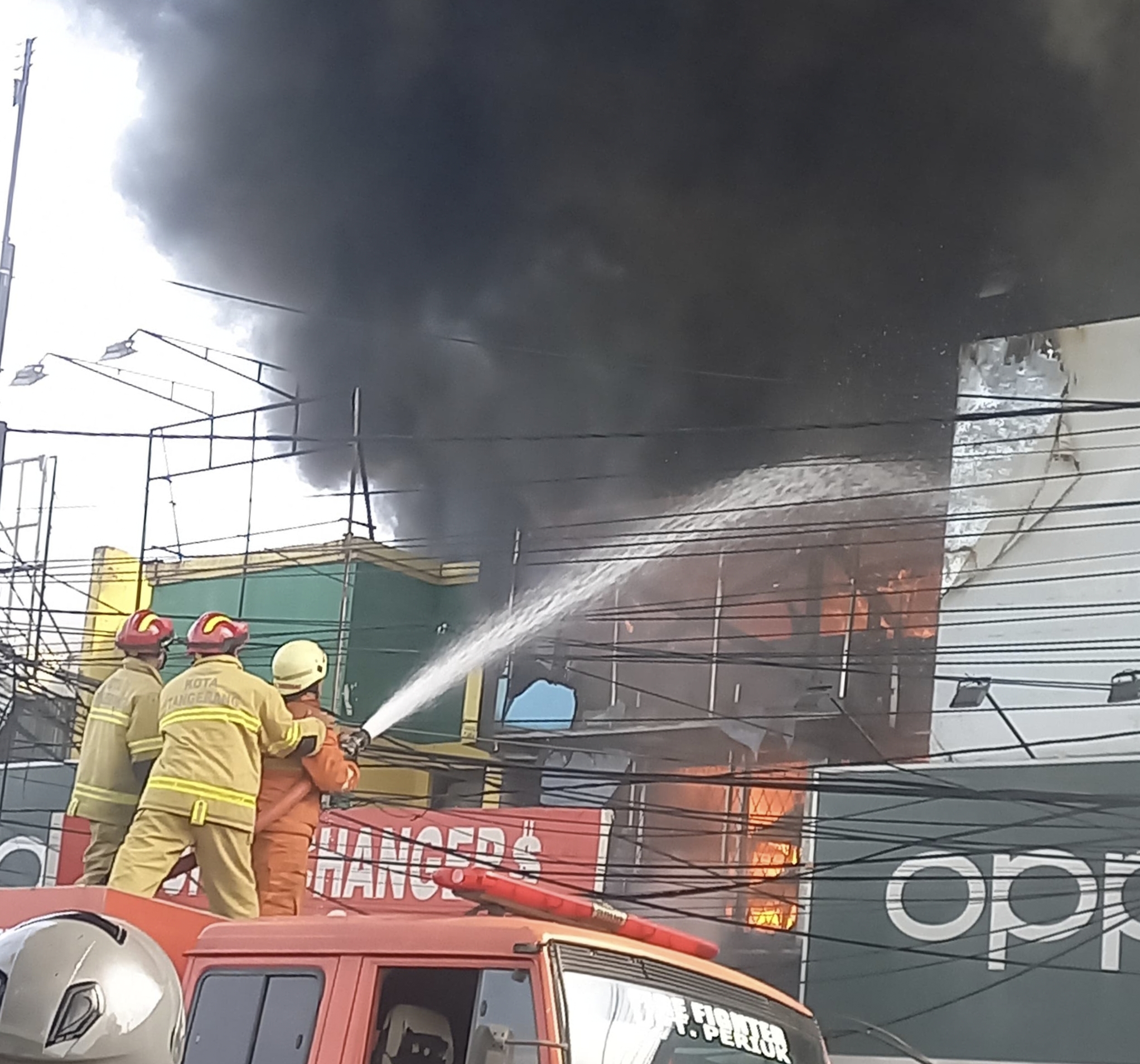 “Ini ada lima ruko yang terbakar, itu bagian lantai dua. Dugaannya adalah adanya korsleting listrik yang terjadi di ruko money changer. Ruko yang terbakar ini di antaranya toko ponsel, money changer, dan juga penjual alat terapi,” jelas Andia.