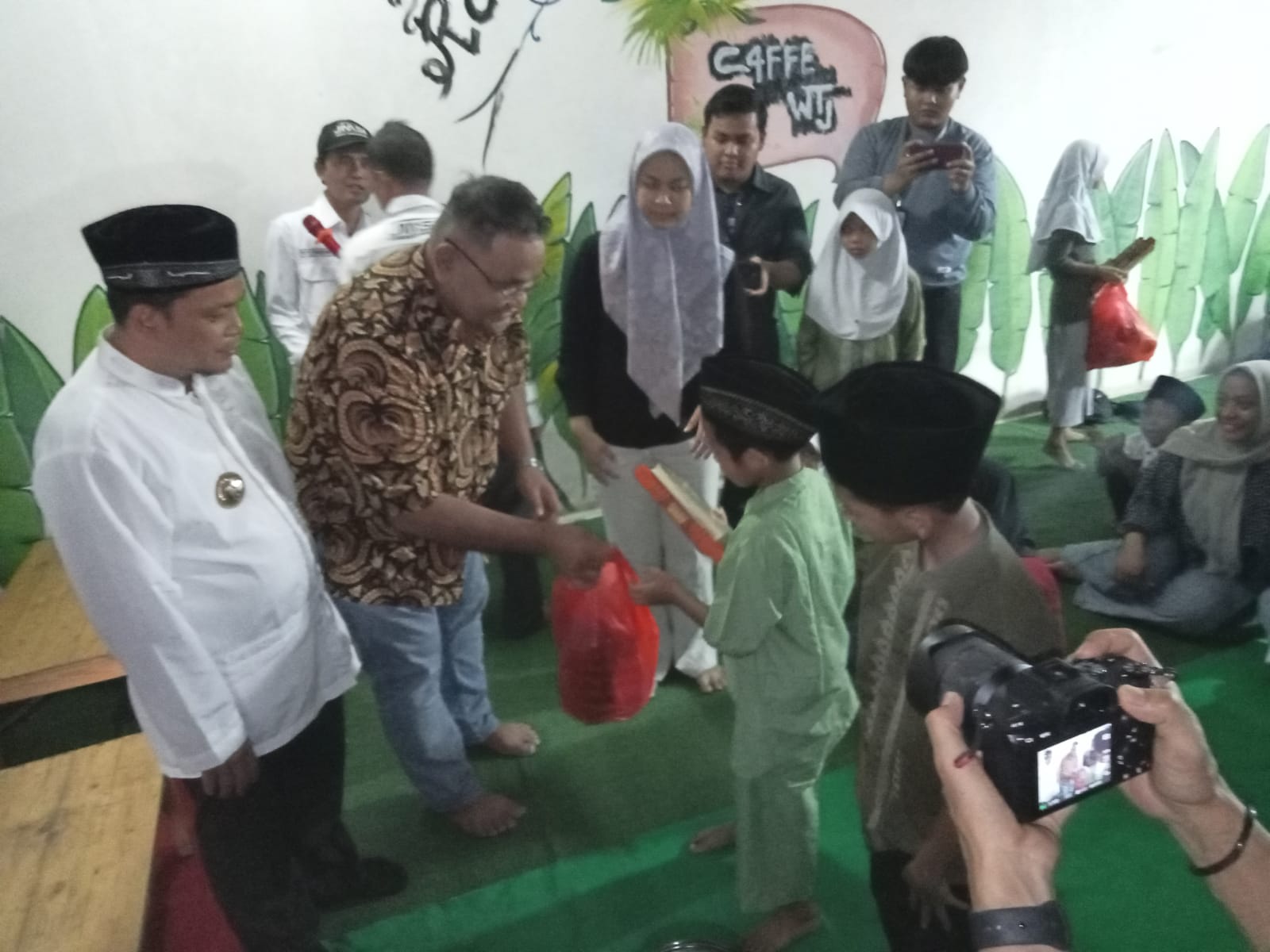 Sebelum diskusi berlangsung, kegiatan ini dimulai dengan pembagian santunan kepada puluhan anak yatim piatu.